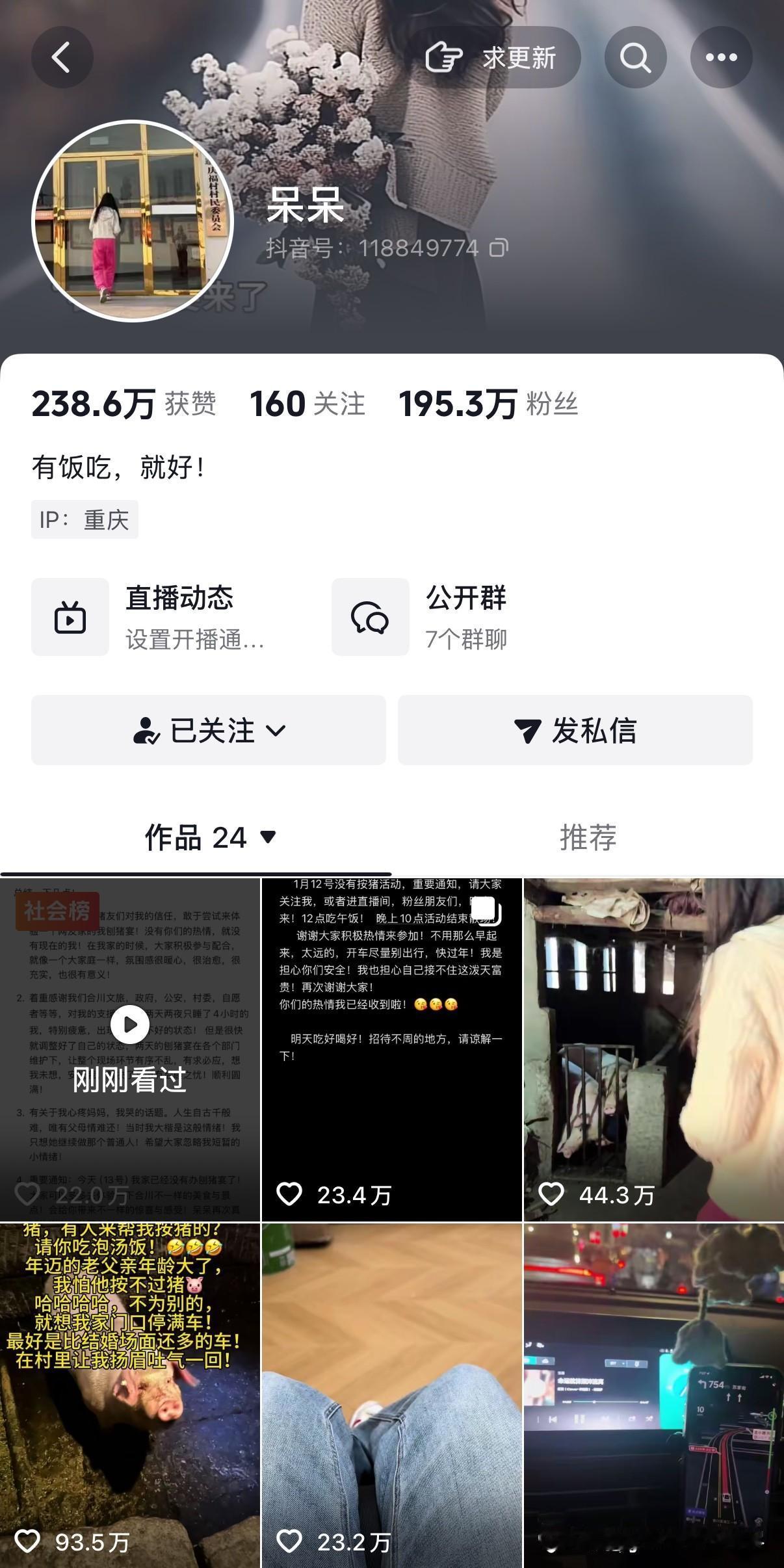 重庆合川这两头猪的魅力究竟有多大? 博主呆呆两天涨粉100多万 线下去喝刨猪汤的有上千人 直播间超10万人在线观看 合川文旅凌晨上门接这波流量 合川交警在村里疏导道路交通 网络应急通讯车直接开到家门口 呆呆家门口还安排了篝火晚会 庆福村成了网红打卡的景点 全国人民都知道了重庆合川 这就是呆呆家两头猪所做出的贡献!