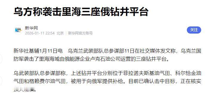 乌克兰宣布! 1月11日,乌克兰武装部队总参谋部突然在社交媒体宣布:乌军刚刚把俄能源巨头卢克石油公司在里海的三座海上钻井平台给炸了! 这三座被炸的平台可不是普通设施,全是卢克石油在里海的核心资产,分别在菲拉诺夫斯基、科尔恰金和格赖费尔三个油气田。 就说菲拉诺夫斯基那个油气田,光石油储量就有1.29亿吨,跟科尔恰金油田加起来,一天能产5600吨油,一口井的产量顶得上一百口陆上油井。 更关键的是,里海这边开采成本只有西伯利亚的三分之一,简直是稳赚不赔的摇钱树。 俄罗斯从这里抽的油气,一部分直接送往前线给坦克、战机当燃料,另一部分出口换汇,换成军费接着打。 现在这三座平台一炸,直接全面停产,卢克石油估算至少要45天才能恢复生产,消息一出来,他们的股价在莫斯科交易所立马跌了3.2%,真金白银的损失摆在那儿。 这次袭击能成功,全靠乌军那批新的远程无人机。他们用的是自己国产的FP-1无人机,单机成本才5.5万美元,却能飞1600公里,还能装60到120公斤的战斗部。 这次一下子出动了几十架,搞饱和攻击,专门盯着平台的燃气轮机、压力控制系统这些关键部位打。 而且这些无人机还能用雷达吸波材料,贴着海面超低空飞行,成功绕开了俄军的防空网。 说起来,这已经是2025年12月以来,乌军第四次炸俄罗斯的能源设施了,之前还炸过阿斯特拉罕的天然气处理厂、克拉斯诺达尔的炼油厂,摆明了就是要跟俄罗斯打能源消耗战。 有人可能觉得乌军这招能扭转战局,但说实话,大概率是白费力气。 这种伤敌一千自损八百的打法,顶多让俄罗斯受点经济损失,延缓一下补给,根本改变不了正面战场的态势,反而会招来更猛烈的报复。 现在俄罗斯已经把里海舰队的“暴徒-M”级护卫舰调过去了,这种舰装了“铠甲-M”防空系统,专门用来拦截空中目标。 接下来俄军很可能用巡航导弹炸乌克兰的无人机工厂和后方指挥中心,到时候乌军损失只会更大。 更要命的是,里海可是藏着全球18%油气资源的宝地,被称为“第二个中东”,现在这里变成战场,全球能源市场肯定要动荡。 其实俄乌冲突打到现在,早就不是简单的领土争端了,完全变成了拼耐力、耗资源的持久战。 乌军炸钻井平台,看着是主动出击,其实是被逼到墙角的无奈之举,正面打不过,外援又不稳定,只能靠偷袭找突破口。但这种办法越有效,双方的仇恨就越深,冲突就越难结束。 要知道,战争输赢从来不是看谁炸的设施多、手段狠,而是看谁能先放下仇恨回到谈判桌前。 能源本该是驱动生活的动力,不是战争的筹码。希望国际社会能多做点实事,推动双方停火谈判,别再让这场没有赢家的战争继续消耗下去了。 毕竟到最后,买单的永远是无辜的老百姓,而和平才是所有人最渴望的东西。
