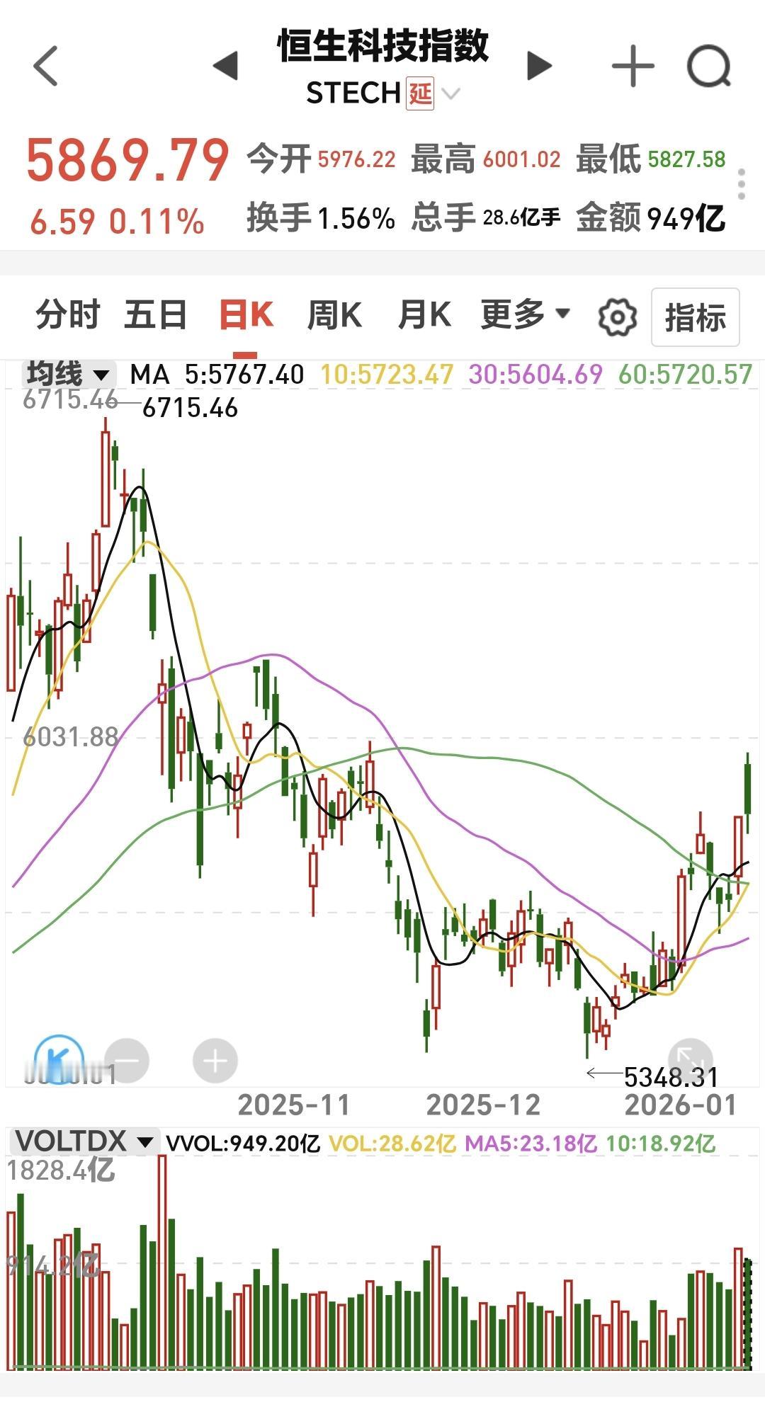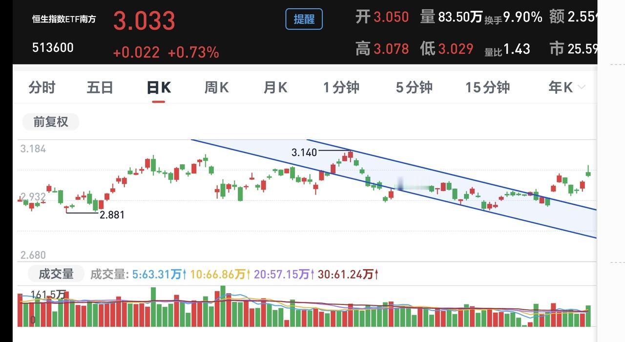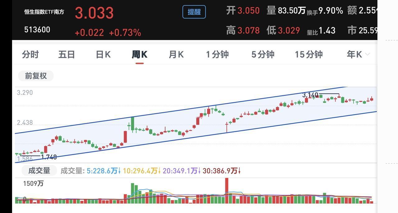 基金:恒生科技板块应该怎么办 香港市场今天上涨,恒生指数上涨了0.90%,国企指数上涨了0.71%,恒生科技指数上涨了0.11%,上涨幅度都不大。 恒生科技指数今天上涨幅度最小,上涨了0.11%,收盘的时候五天线位置是5767点,收盘点位是5869点,收在5天线之上,只要不跌破5天线,就没有看空的理由。 我们来看一下下面的截图4,这是恒生科技指数的日k线图,从图中可以看出,我画了两条倾斜向下的斜线,前段时间上涨突破了这个下跌通道的上轨,显示了恒生科技板块日线级别下跌趋势已经被改变。 我们来看一下下面的截图5,这是恒生科技板块周K线图,从图中可以看出,我画了两条倾斜向上的斜线,这是恒生科技板块周线级别上涨通道,现在的位置处于这个上涨通道中,也就是说,恒生科技板块周线级别处于上涨趋势中,持有的人可以继续持有,除非跌破这个上涨通道的下轨,才可以考虑要不要止盈出来观望。 我每天都会分享我的观点,我的观点只代表我个人的看法,不能作为你操作的依据,据此操作后果自负。