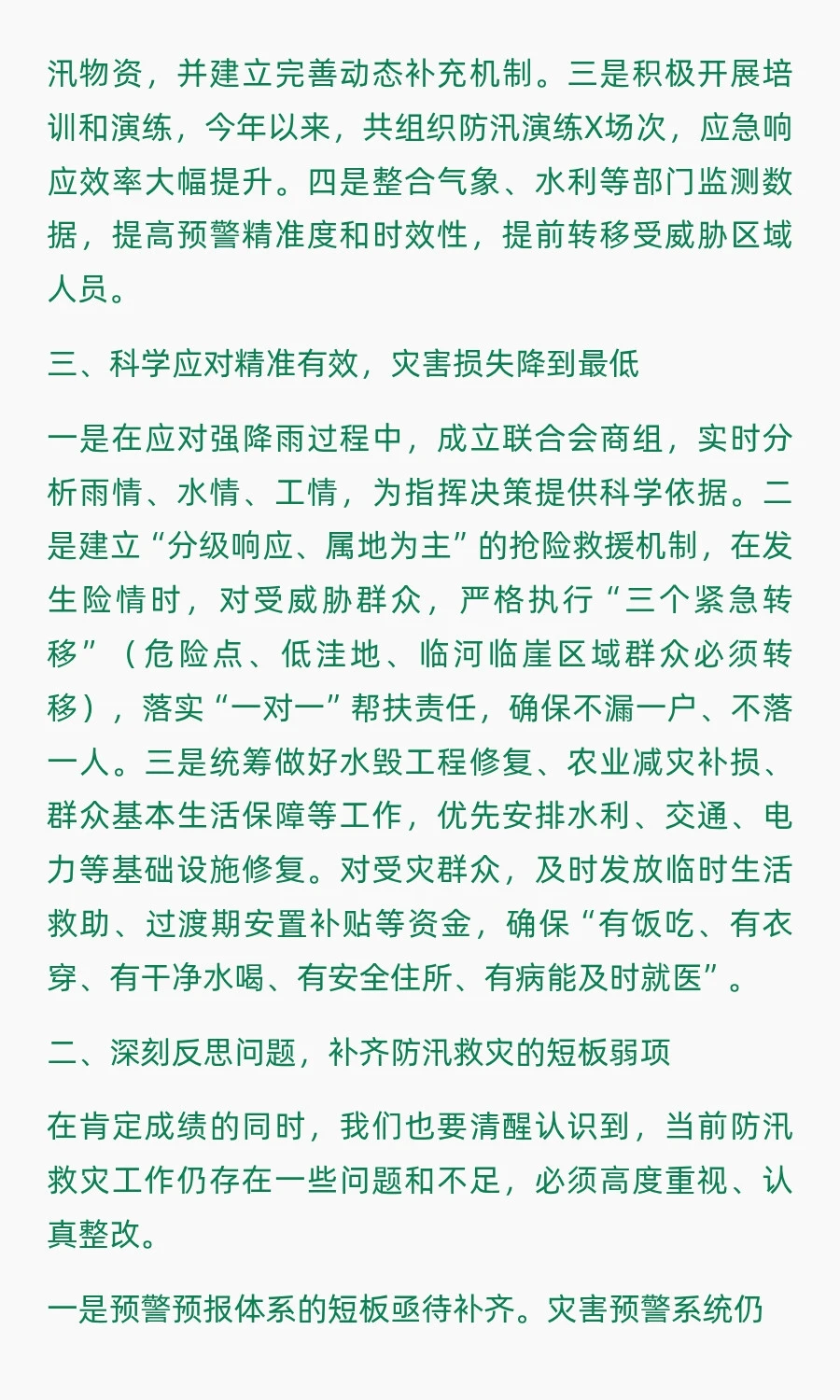 体制内:防汛救灾复盘分析会讲话材料