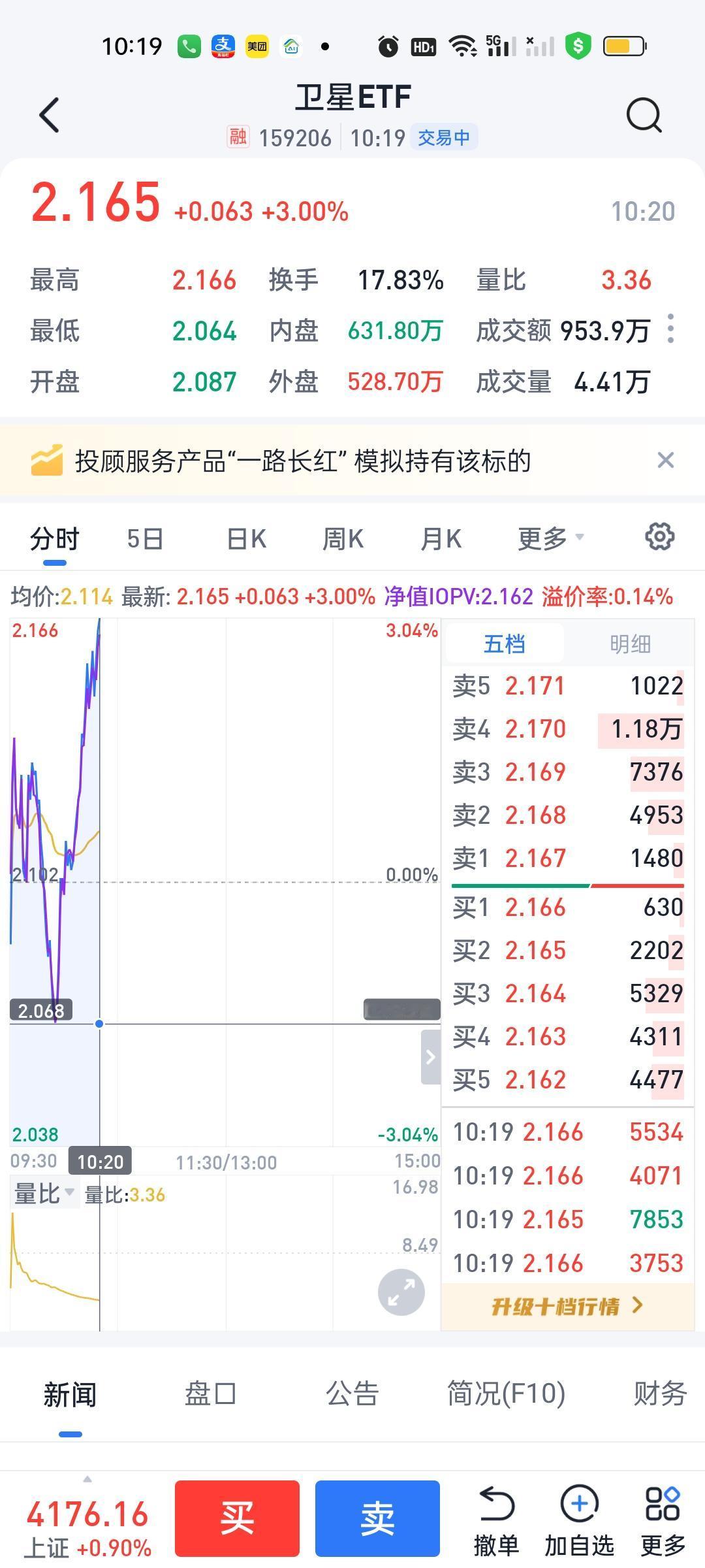 兄弟们,我闯大祸了!怎么办啊?卫星ETF我本来想挂2.068买进1000股,没想到点错了2.168买进1000股,现在直接在2.160的价格成交了,我现在很慌啊,怎么办呢?真的没有遇到过这个问题。大家说说怎么整?