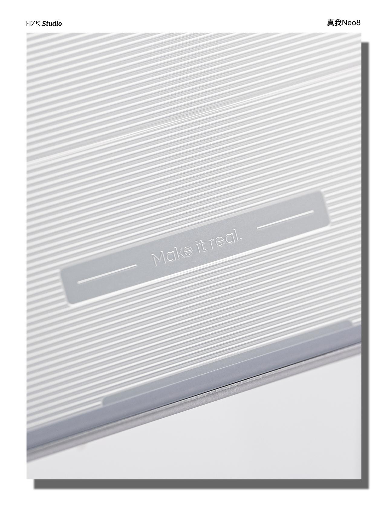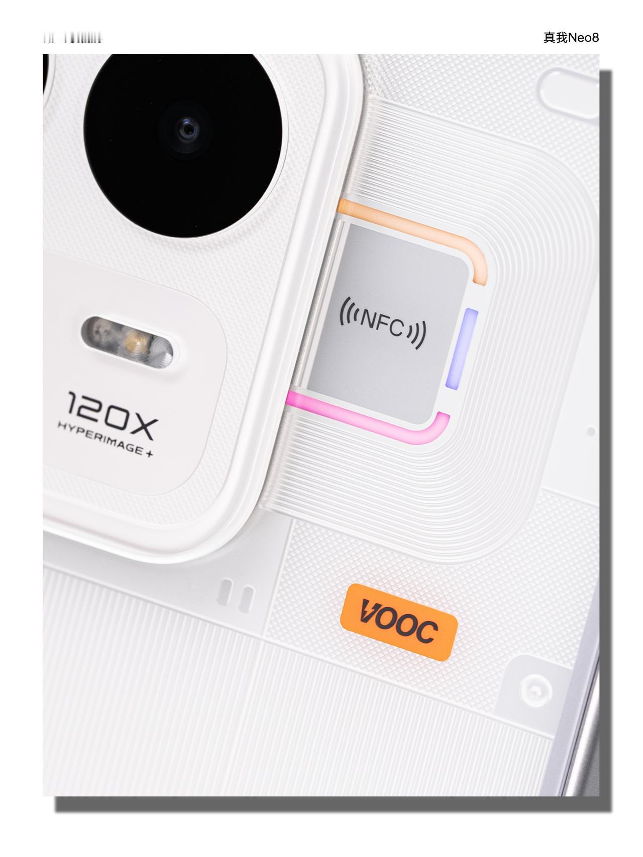 HYK图赏|真我Neo8 后盖是透明玻璃材质,里面裹着细密的机械结构纹路,有没有一种工业精致感,搭配上金属中框,手感也很棒。这代还回归了觉醒光环,而且能适配游戏、音乐等更多场景,是不是更有仪式感了。镜头模组是矩形布局,下面那颗印有“120X”的标识。这代还搭载了165Hz三星苍穹屏,完全就是电竞夯机。