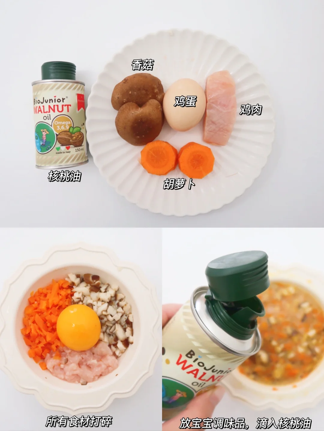 新鲜鸡肉➕香菇➕胡萝卜➕鸡蛋