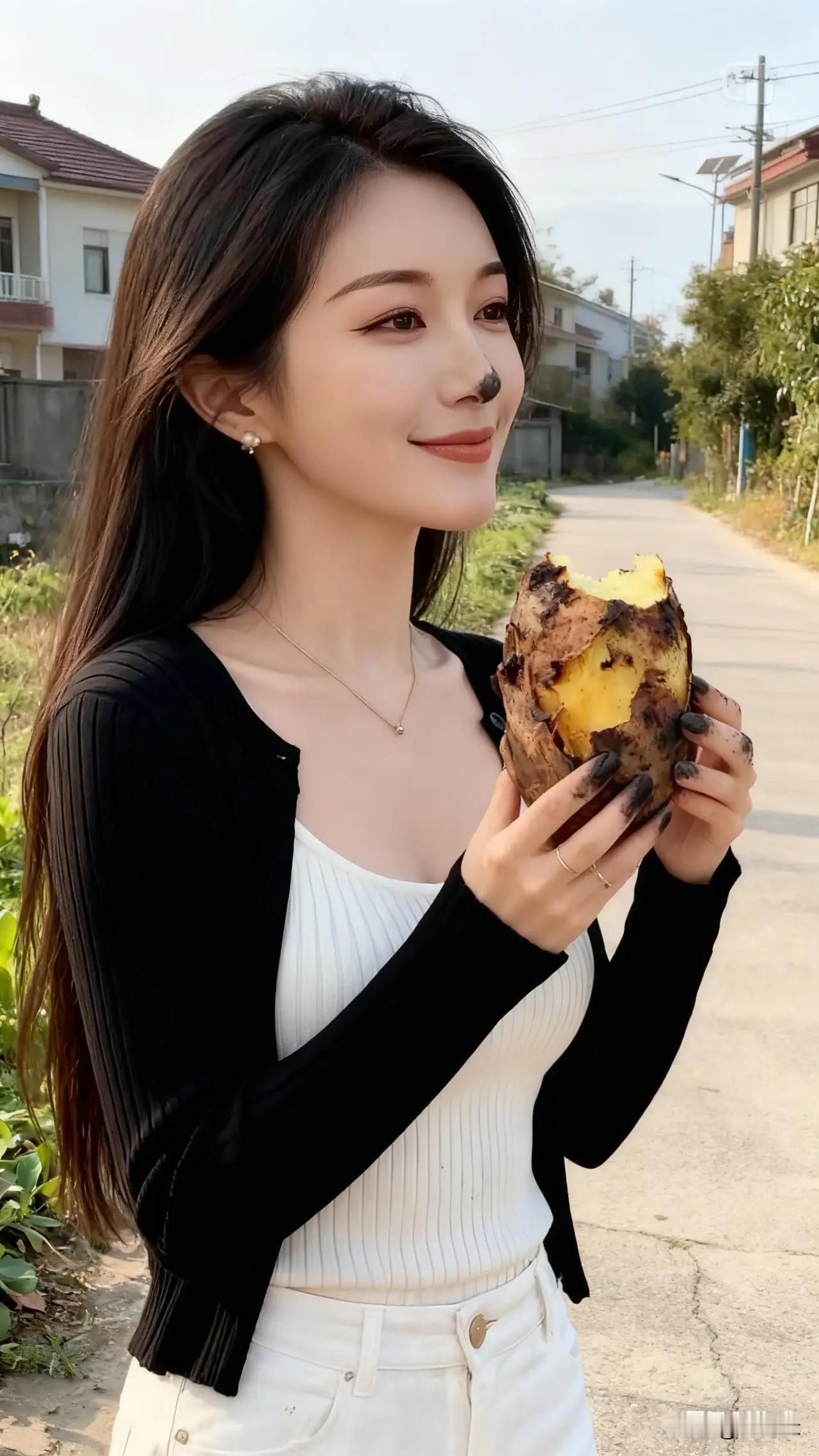 笑得这么甜,还吃烤红薯呢!烤红薯 红薯烤红薯 甜甜蜜蜜烤红薯 爆汁烤红薯 东北烤红薯地瓜 十足烤红薯
