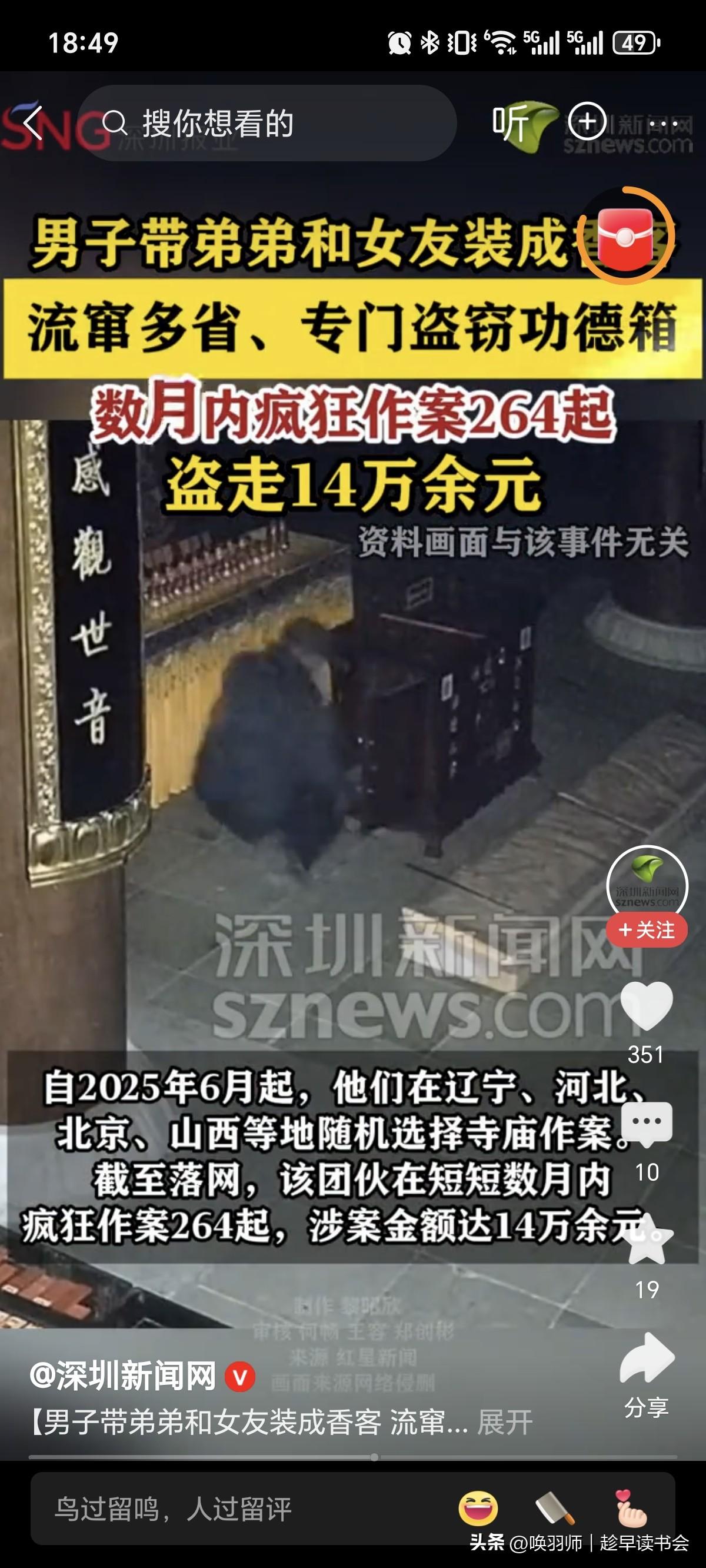 近日,辽宁葫芦岛警方打掉一流窜多省、专盗寺庙功德箱的犯罪团伙。该团伙两男一女在7个月内,利用导航随机选择目标,横跨数省作案264起,盗走现金14万余元。其行为不仅涉嫌“多次盗窃”的刑事犯罪,更玷污了信众的虔诚信仰,性质恶劣。 此类案件频发,暴露部分人将功德箱视为“提款箱”的扭曲心态。法律对此类侵蚀社会信任根基的行为坚决亮剑,此前已有类似罪犯被判实刑。防范需多方合力:寺庙应加强物防技防,将功德箱置于监控下并每日清账;警方需利用科技手段强化串并案侦查;公众也应提高警惕。 此案警示,盗窃之恶,不仅在于损人钱财,更在于毁坏社会互信的基石。守护这份源于善意的托付,需要法律刚性制裁与社会柔性教化的共同作用。香火盗窃 偷佛像 盗窃佛像 盗窃寺 白塔寺盗窃案 辽阳盗车 葫芦岛盗窃案件