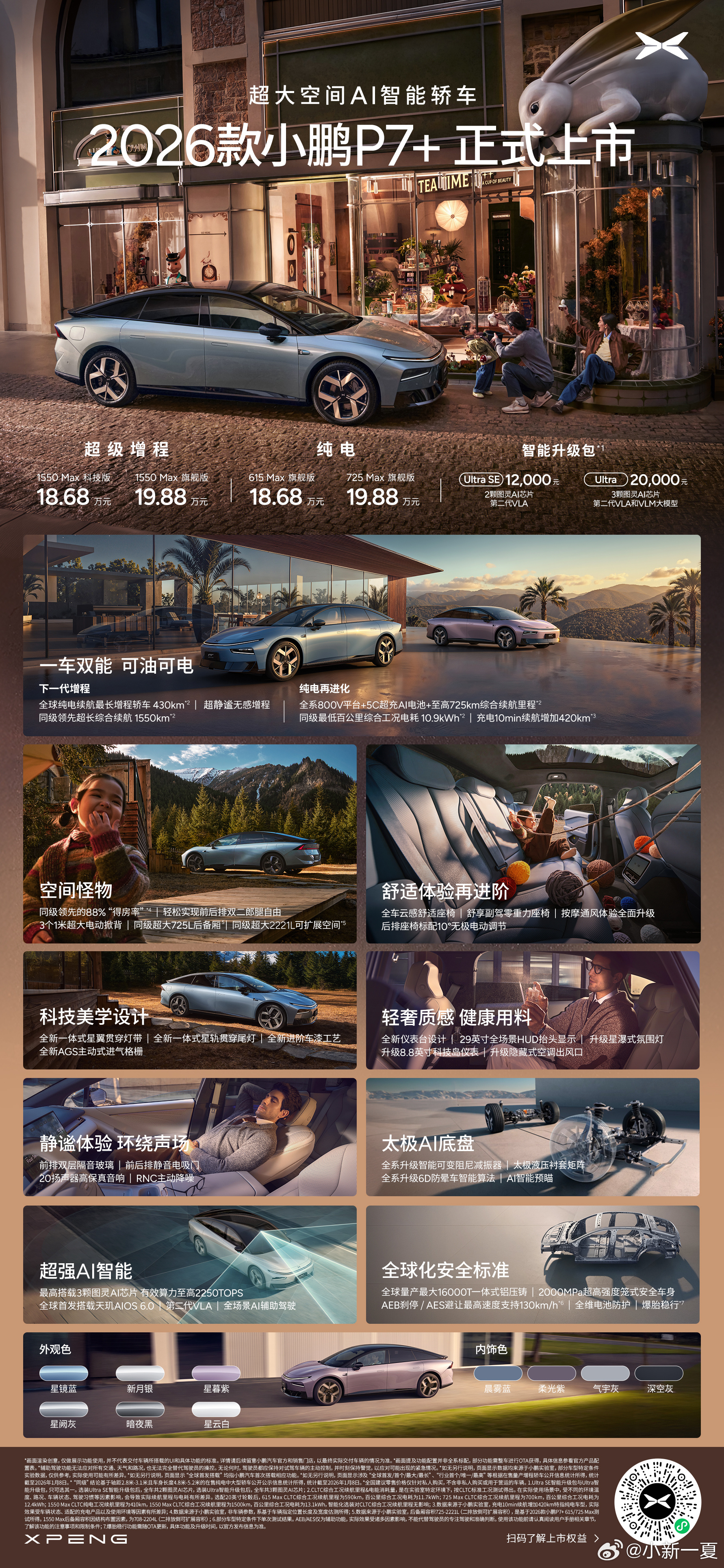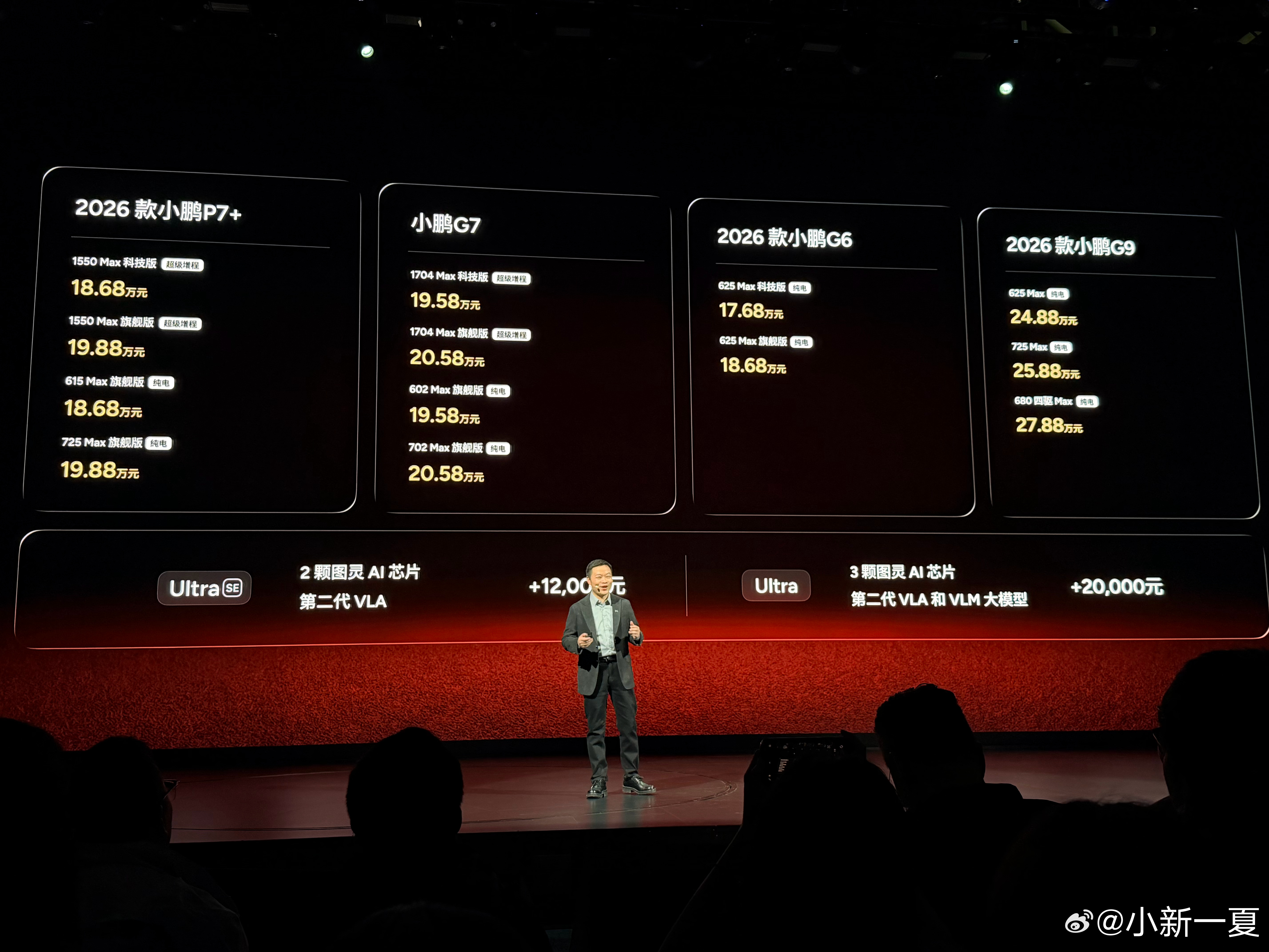 来看小鹏新年四车齐发发布会啦~这次真的全家桶都上了~价格也是让我这老车主,动了想换新的念头哈哈哈!加量不加价,果然一代更比一代香~还特地在年前上了两款超级增程车,综合续航1550KM的小鹏P7+和1704KM的小鹏G7,有长途开车回家过年需求的朋友们有福嘞,开新车过新年哈哈哈~ 大v聊车