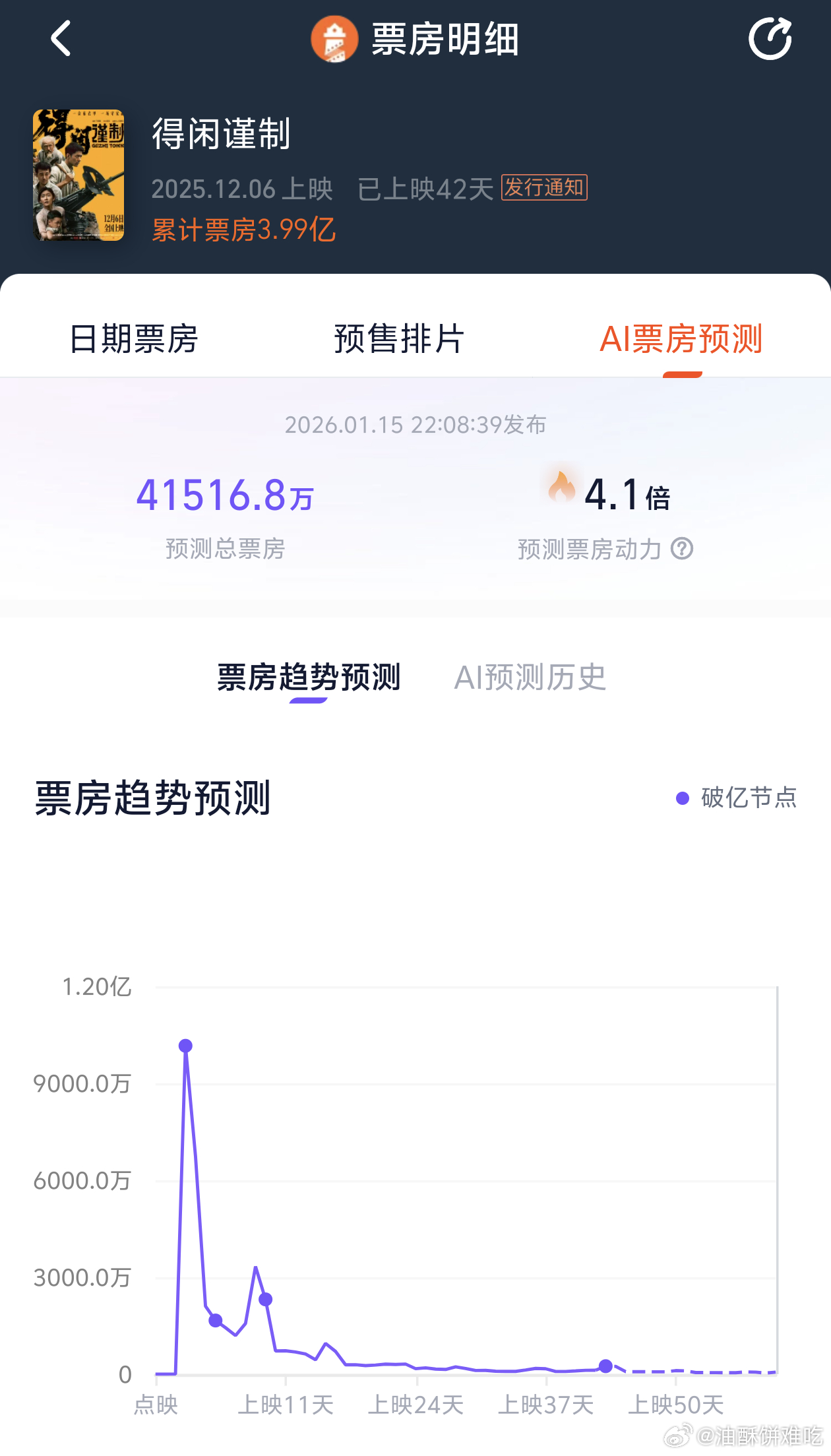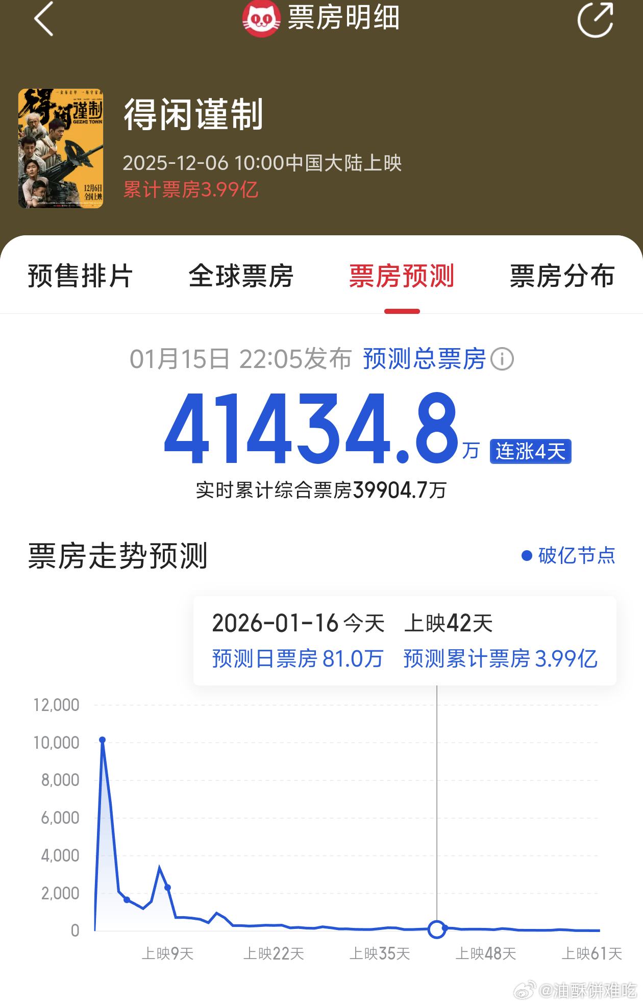 得闲谨制的票房总预测从最开始的3.2亿涨到4.1亿+了,靠口碑逆袭了近一亿票房得闲谨制第11次票房逆跌