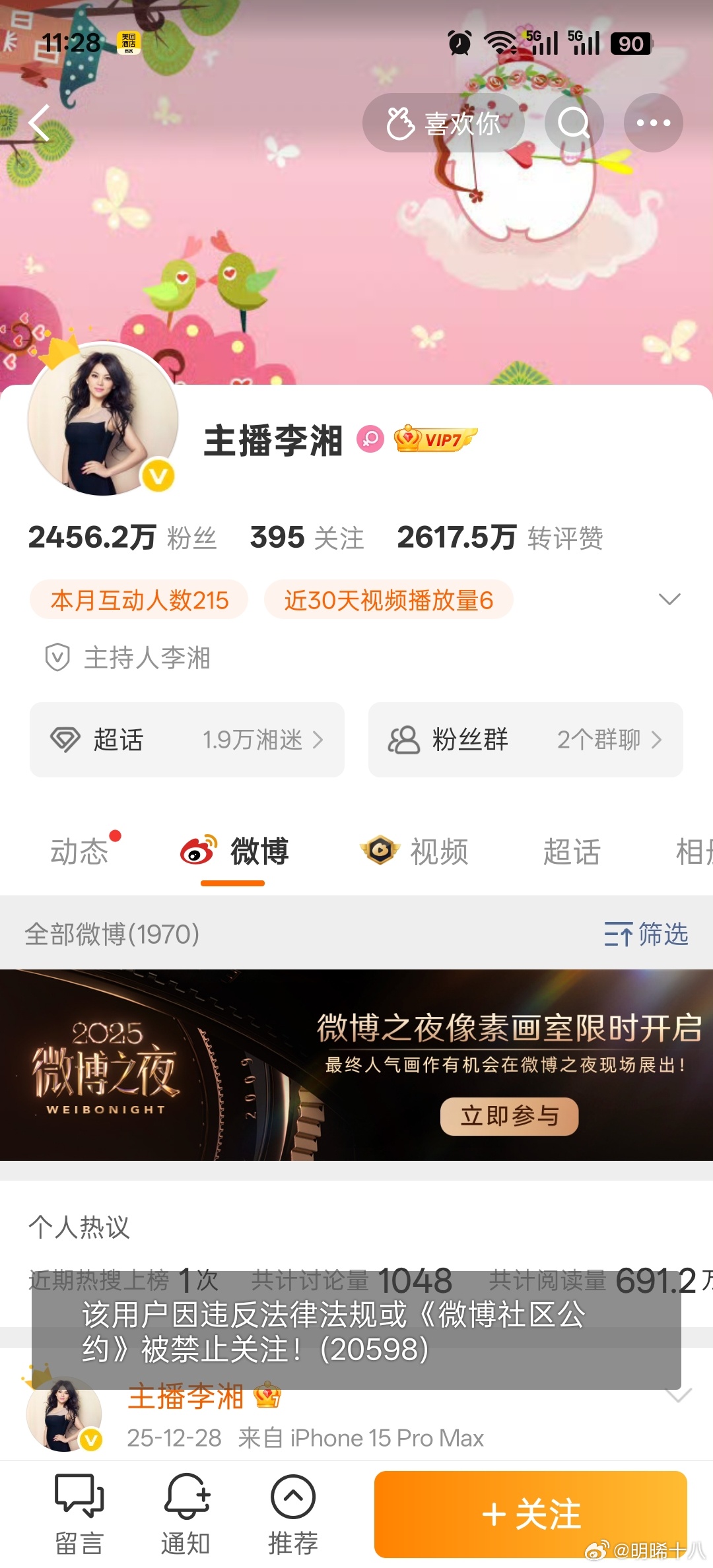 李湘全平台账号被禁止关注提示违反法律法规,难道是李湘出现税务方面的问题了?