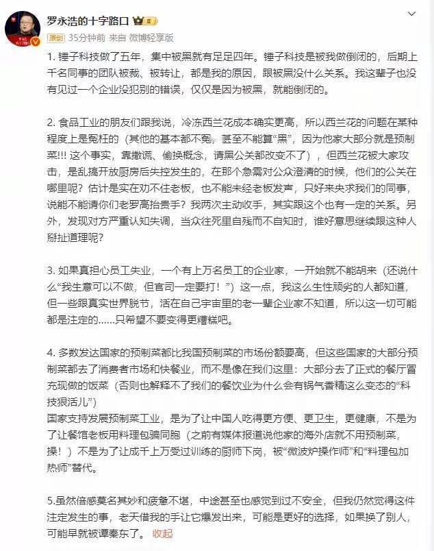 笑不活了! 罗永浩和西贝又掐起来, 这次直接要赔钱了🤣 西贝刚官宣要关掉102家店,涉及4000多员工,老板贾国龙直接把锅甩给了罗永浩,暗指是老罗之前吐槽他们预制菜的事儿,把品牌搞黄了。 罗永浩当场就炸了,回怼道:“没见过哪个企业是被黑倒闭的!”言外之意就是:你自己经营不行,别赖我! 结果贾国龙直接放狠话:“必须给我认真道歉,还要赔钱!” 这波操作直接把网友看懵了,有人说老罗就是嘴炮侠,吐槽完要负责;也有人说西贝是甩锅大王,大环境不好关人家锤子什么事? 咱就是说,这瓜越吃越大,就等罗永浩接招了!你觉得老罗会乖乖道歉吗?评论区聊聊👇西贝现状 罗永浩
