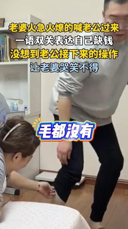 类似的家庭段子不仅越来越搞笑,而且非常精短还能击中人们的笑脸,况且天津本来就是搞笑的哏都。这对夫妻同样如此。妻子对丈夫说“手头有点紧”,丈夫回答“毛都没有”,看似说的是身体反映,其实说的还是钱。这样的段子在短视频市场点击量比较大,也吸引越来越多的人拍摄。