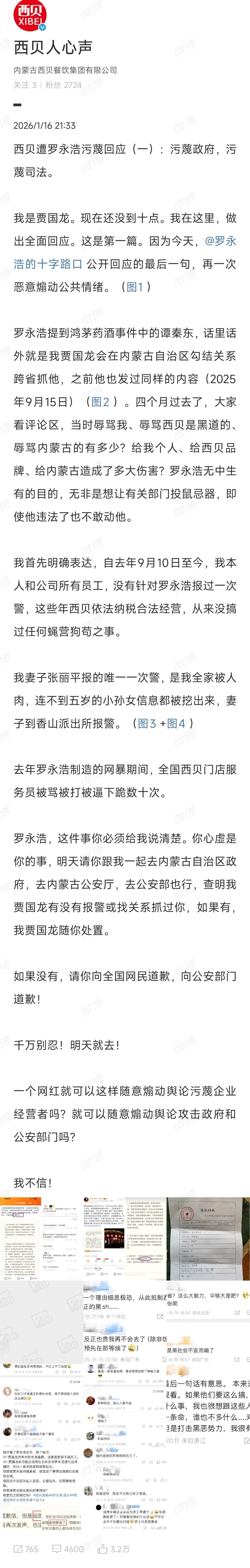 西贝回应如果我说贾国龙对罗永浩说【虽然倍感莫名其妙和疲惫不堪,中途甚至也感觉到过不安全,但我仍然觉得这件注定发生的事,老天借我的手让它爆发出来,可能是更好的选择,如果换了别人,可能早就被谭秦东了。】是不是理解偏差太大?老罗说如果是别人就会是谭秦东但是,现在是老罗呀,所以什么事都没有发生之前老罗说的,图2,emmm 西贝服务员被逼下跪数十次