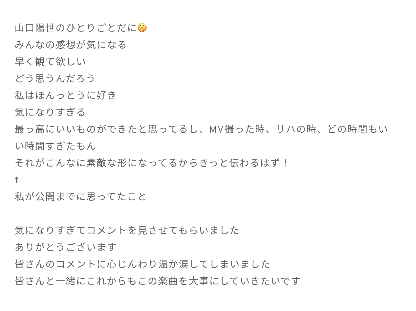 はるよ「ひなのちゃんの歌い出しほんとに大好き こんなにも温かく優しい声 ひなのちゃんにしか出せないものだと思います。ていうか、みんなの歌声が本当にいい!良すぎる!そう思いませんか!!!!優しいのよ。優しいばかり言っちゃうけどほんとうに!」
