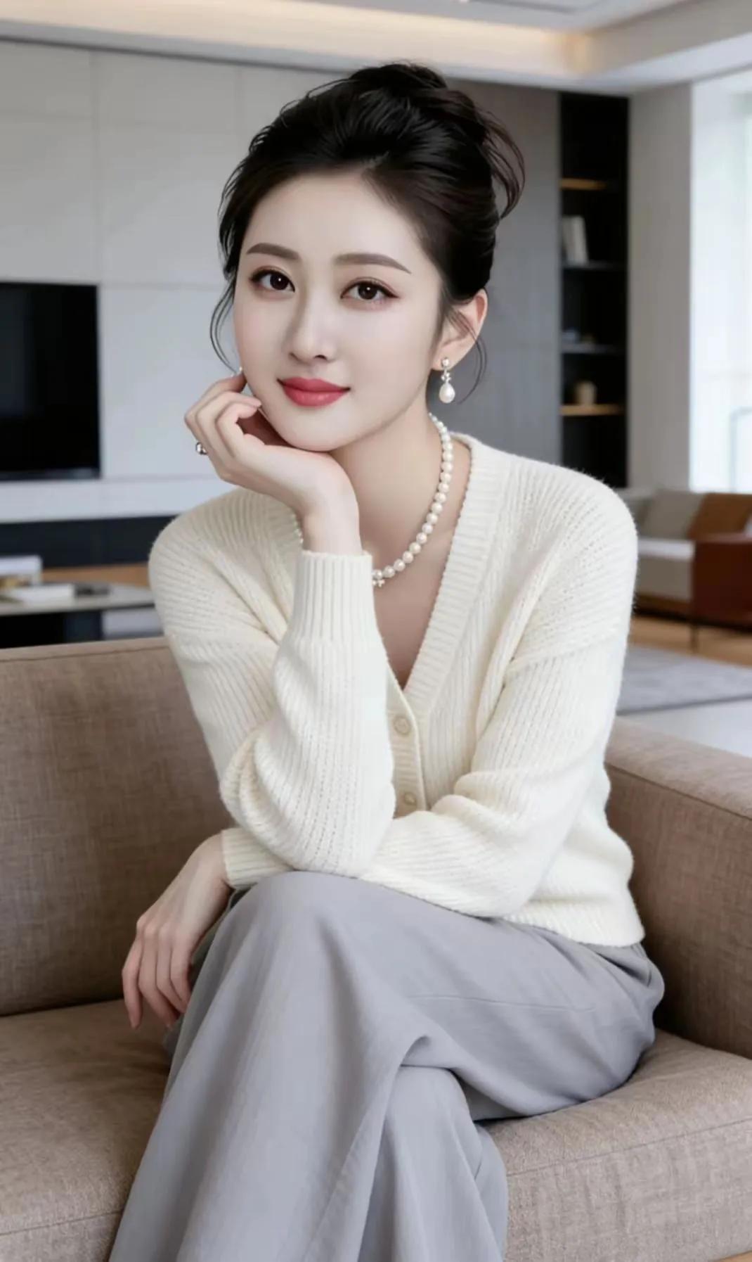 温柔甜美的少女,粉色毛衣搭配自然卷发,清新动人!🌸💖