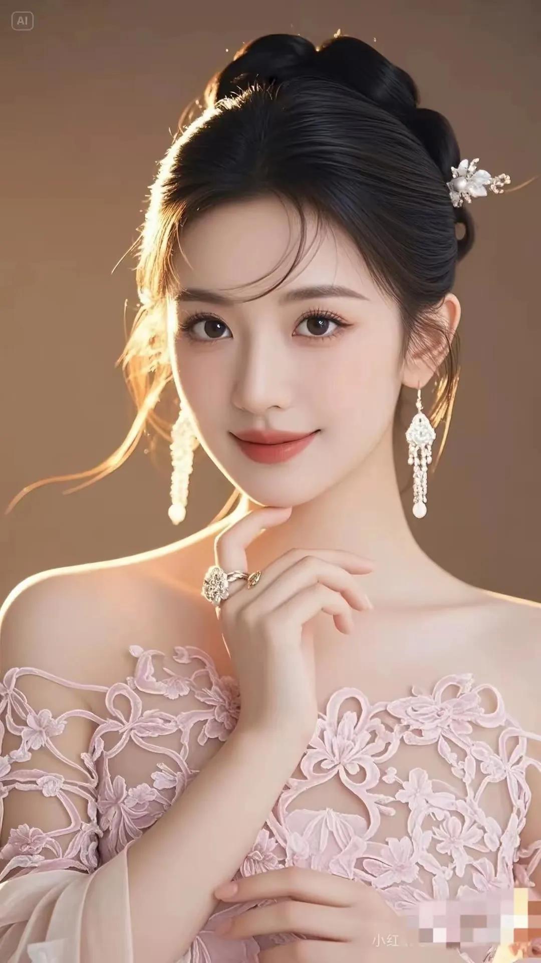 优雅气质,粉色礼服,闪耀耳环,完美妆容,女神范儿
