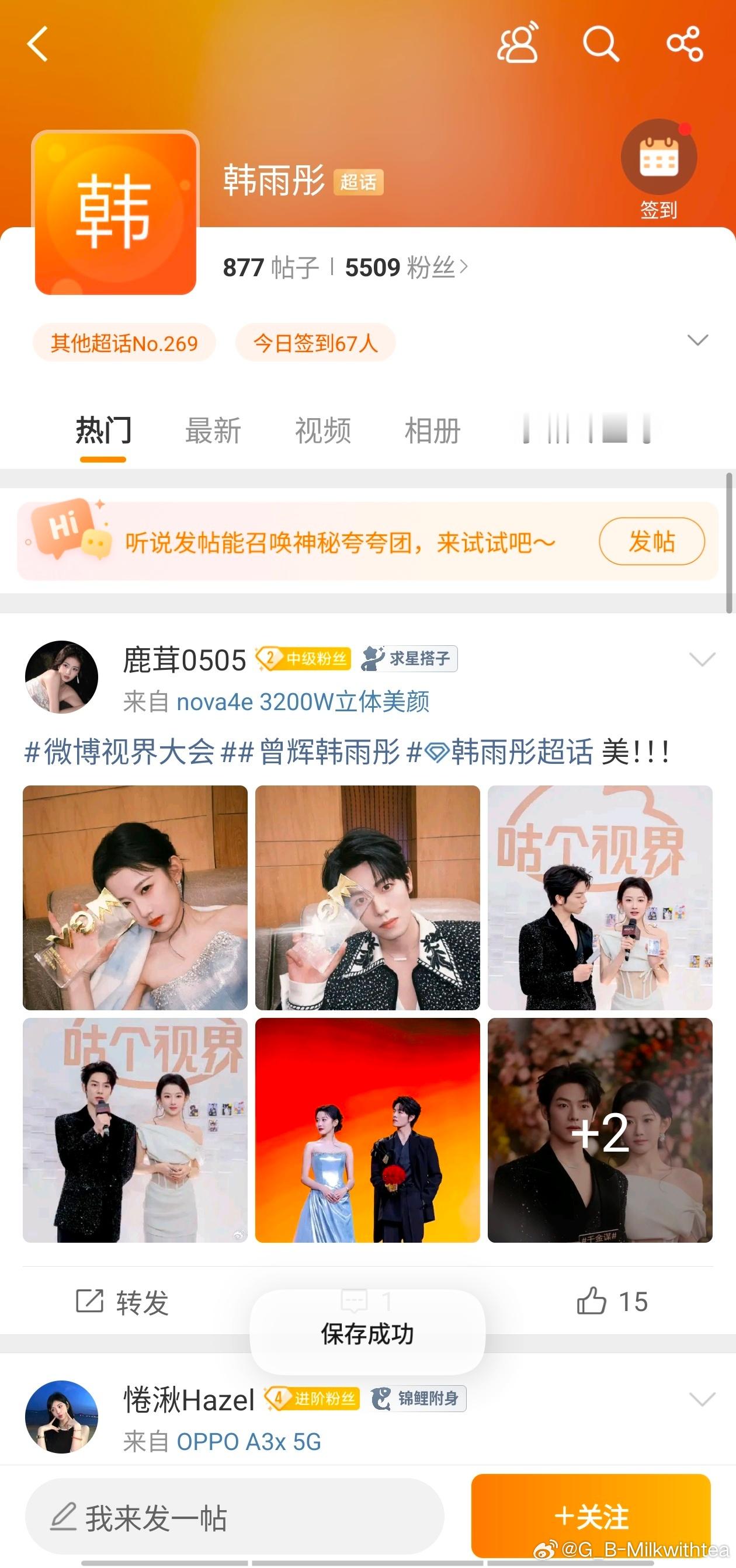 ?为啥韩雨彤这个搜索的关联超话是错的点进主页的才是真的