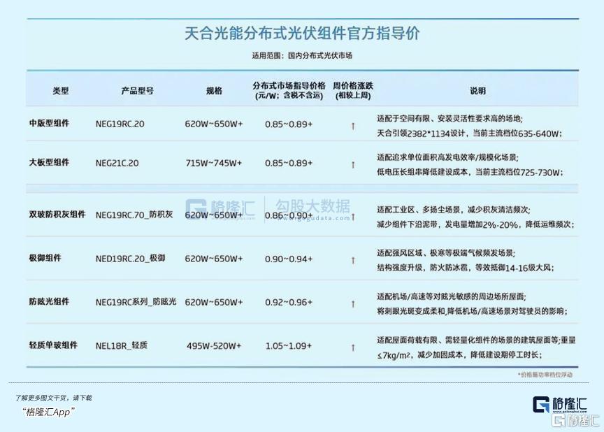 1月13日,天合光能通过官微公告分布式市场指导价,多个产品型号都出现集体涨价,其中分布式光伏组件官方指导价为0.85-0.89+元/W。