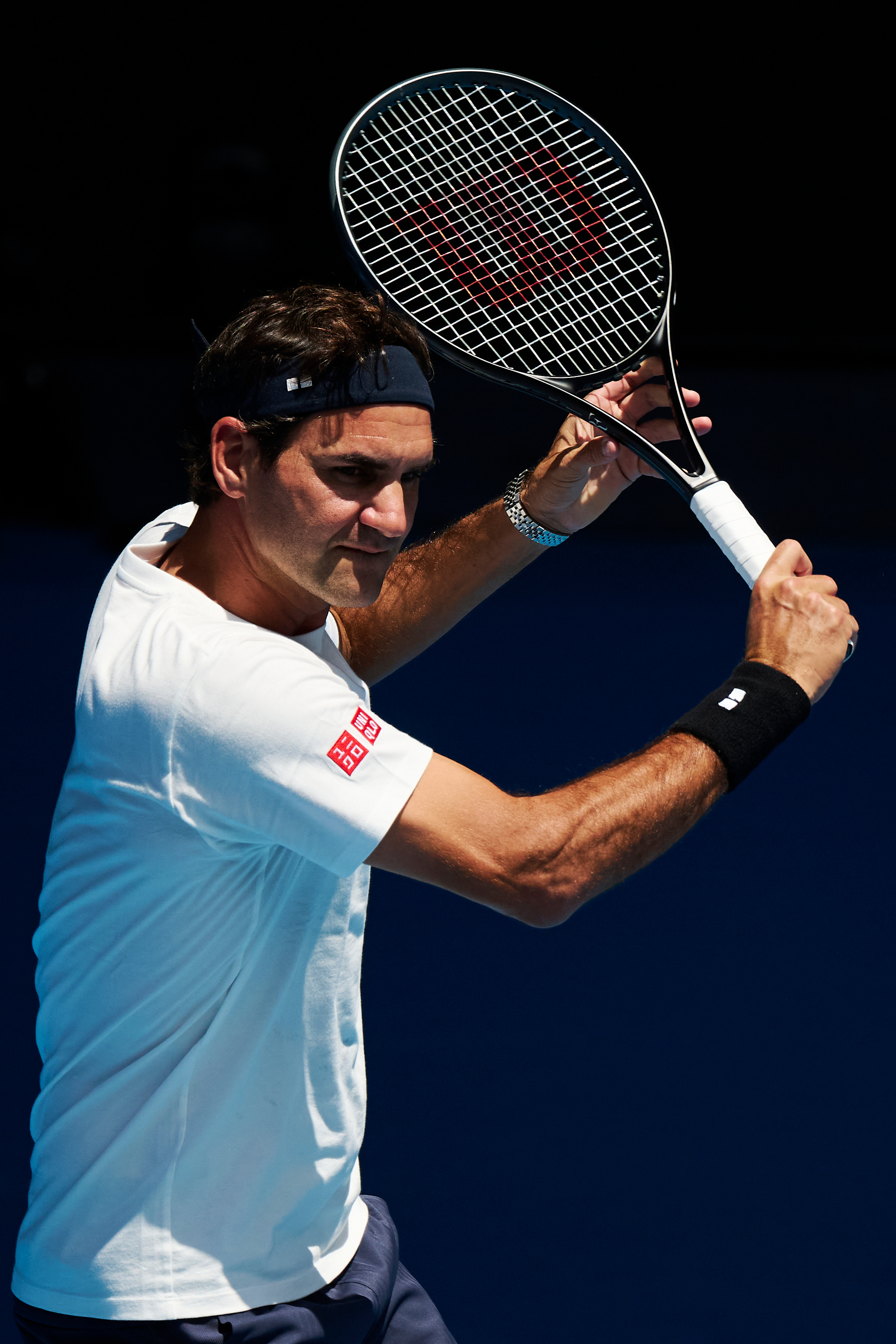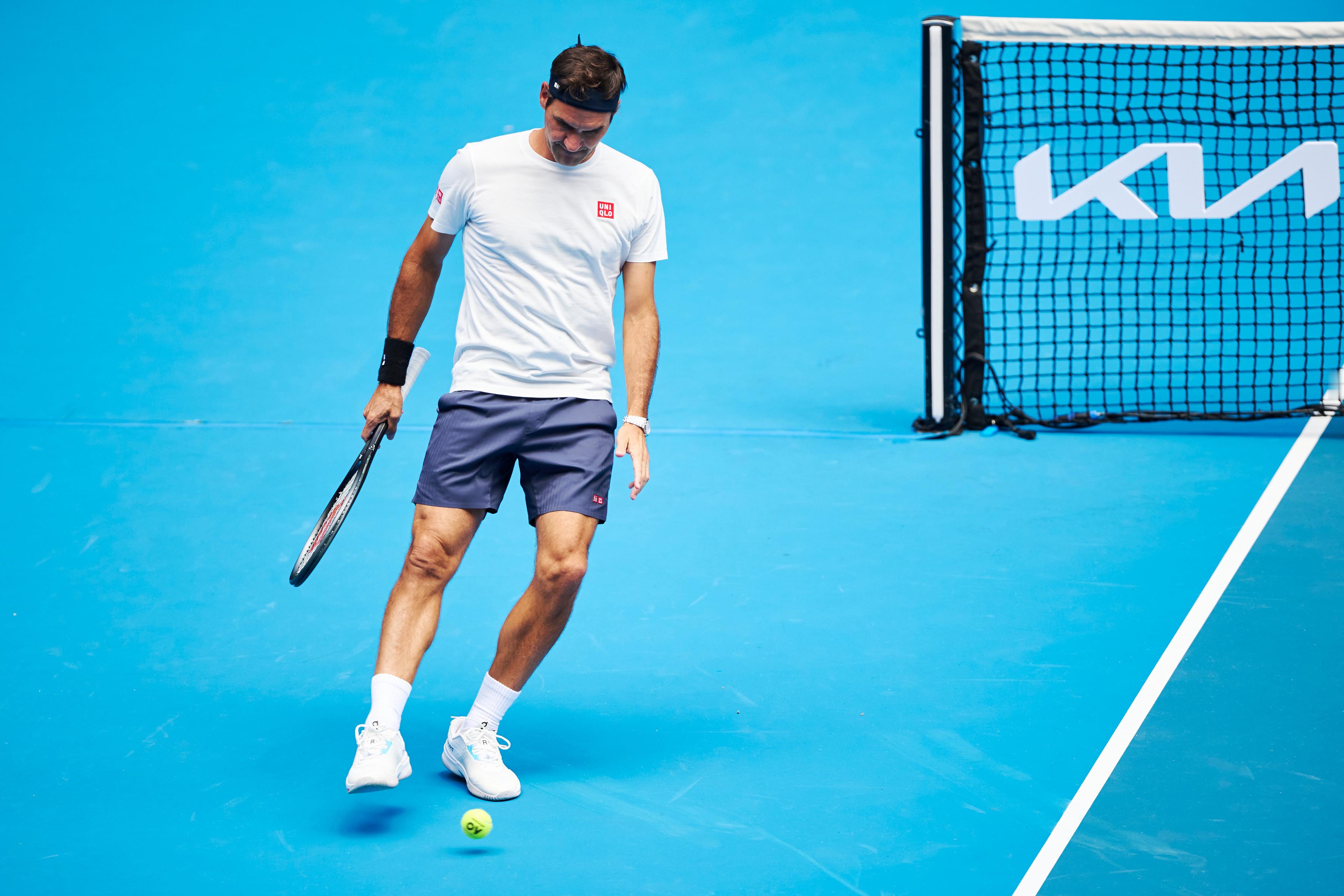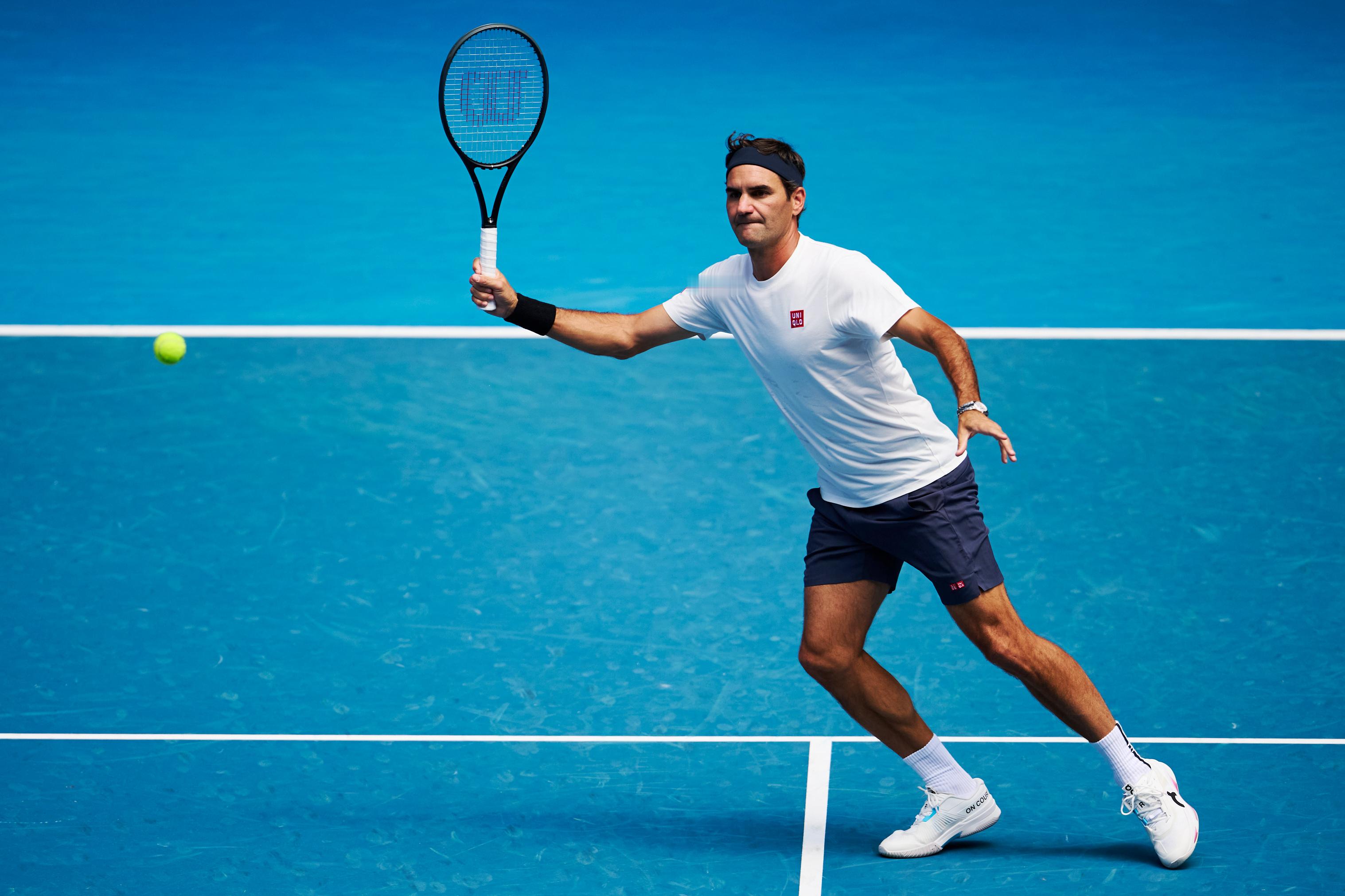 戴发带的瑞士网球天王费德勒重返澳网罗德拉沃尔球场,帅气!摄影:澳网前方记者 李建艺拍于澳网前夕费德勒和鲁德训练澳网2026费德勒