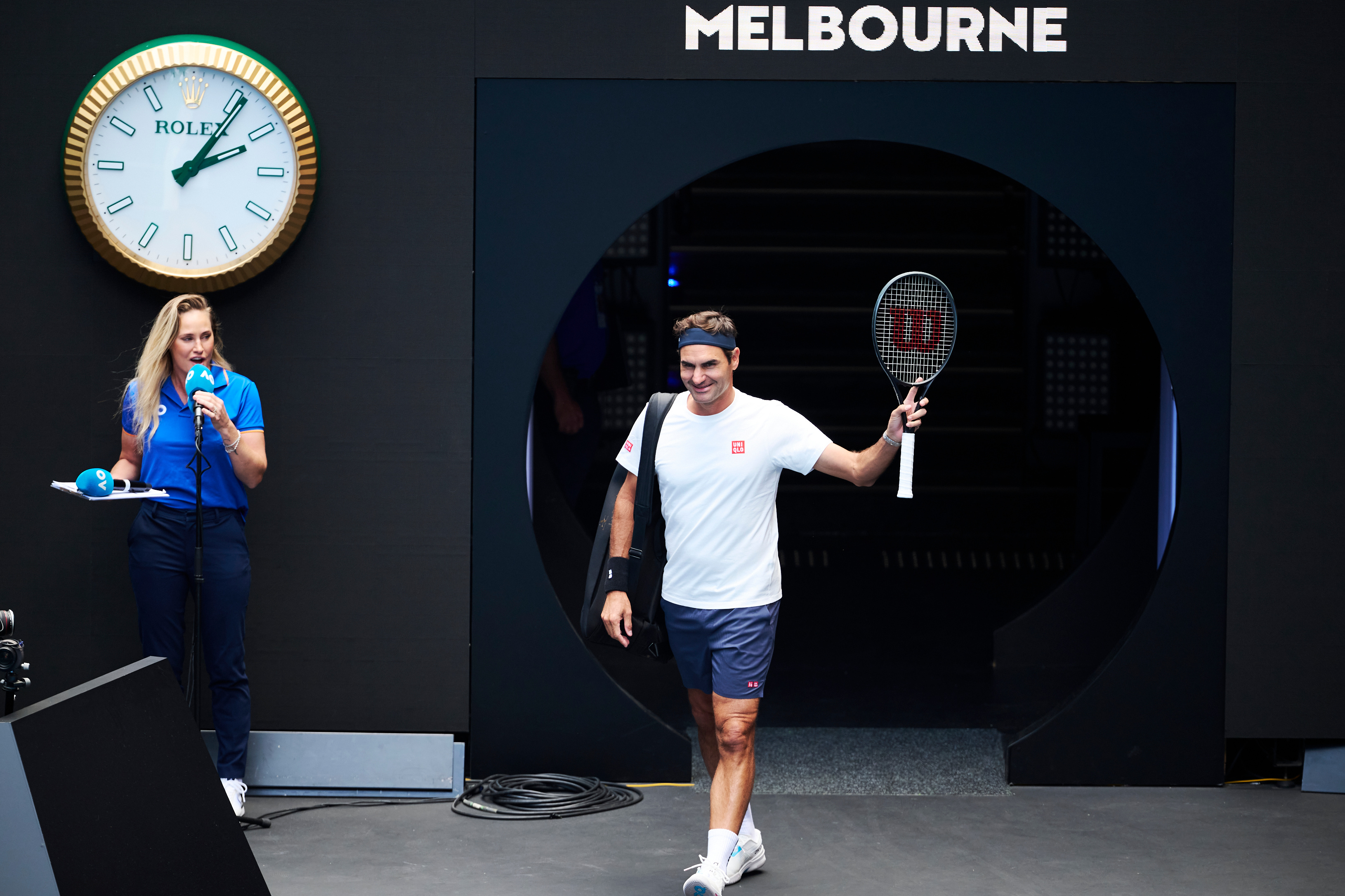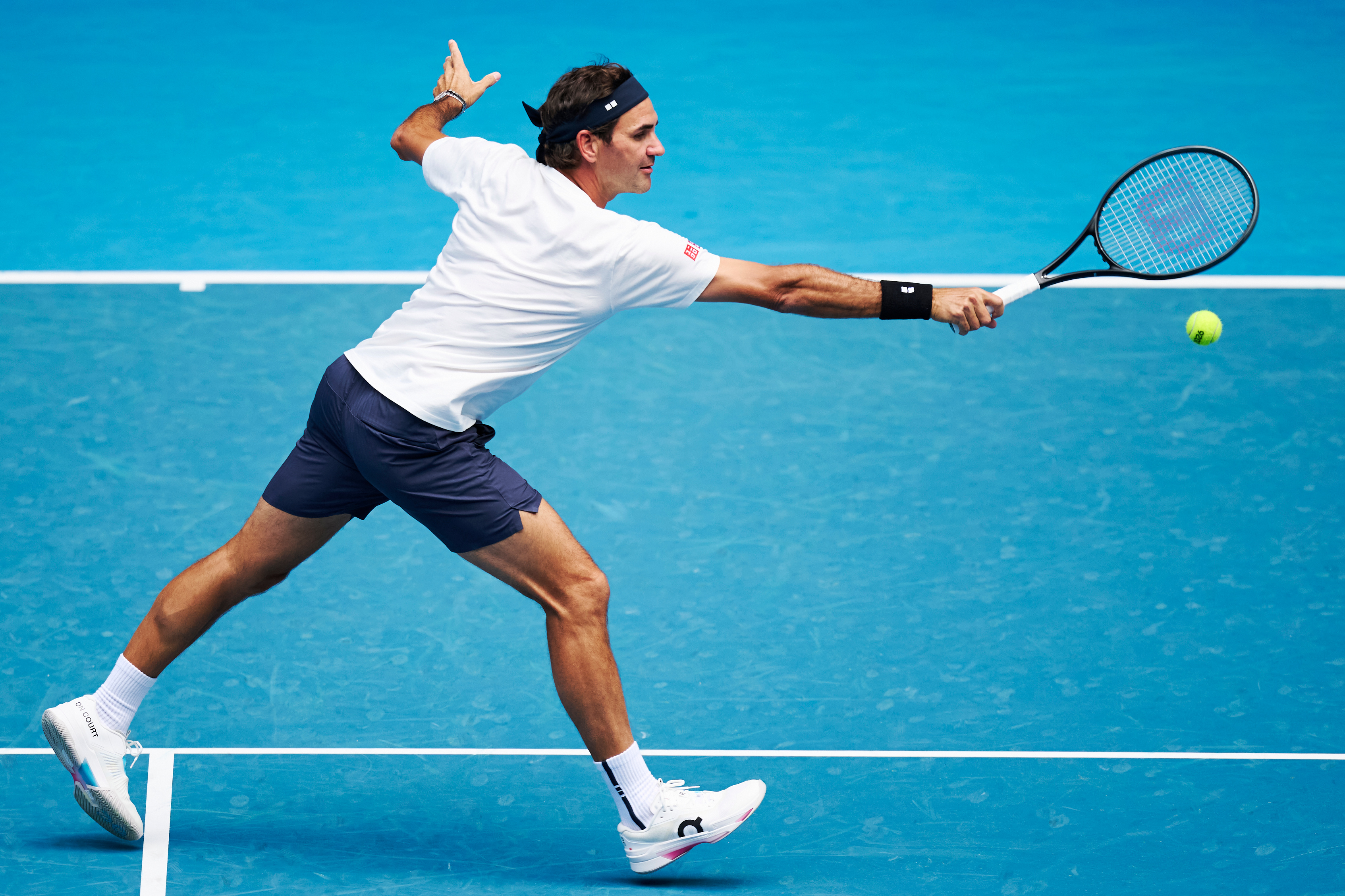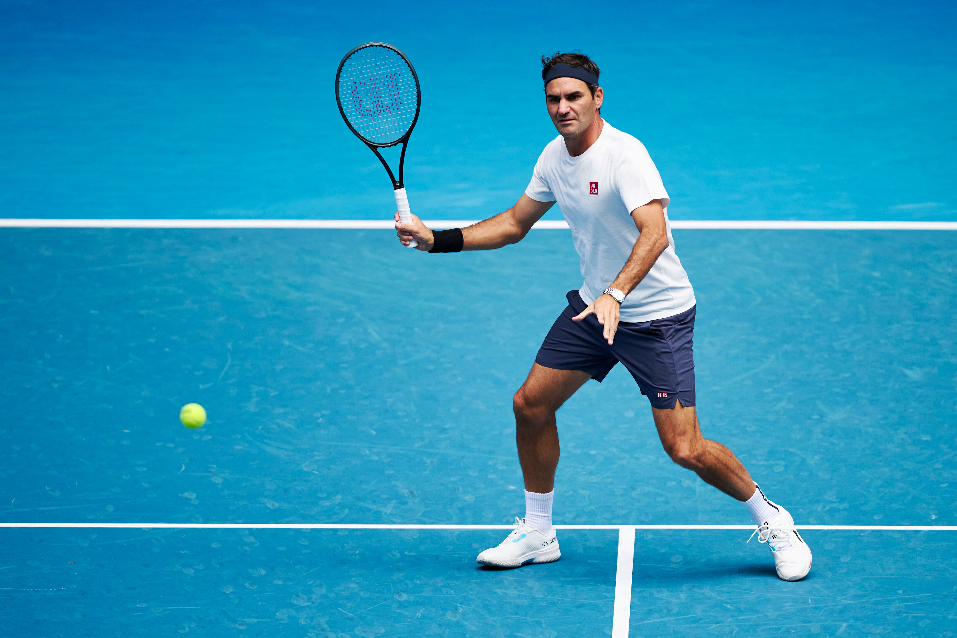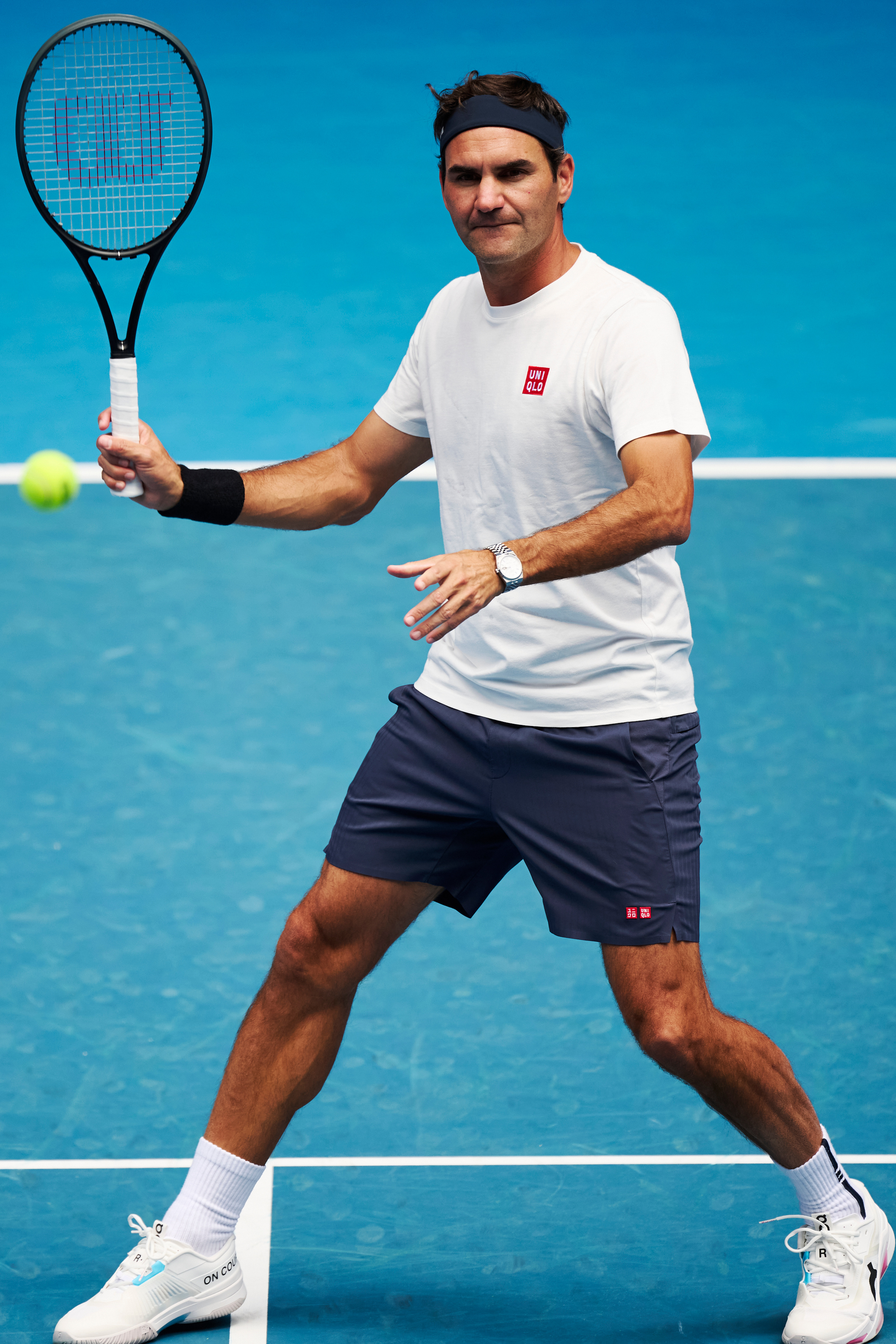戴发带的瑞士网球天王费德勒重返澳网罗德拉沃尔球场,帅气!摄影:澳网前方记者 李建艺拍于澳网前夕费德勒和鲁德训练澳网2026费德勒
