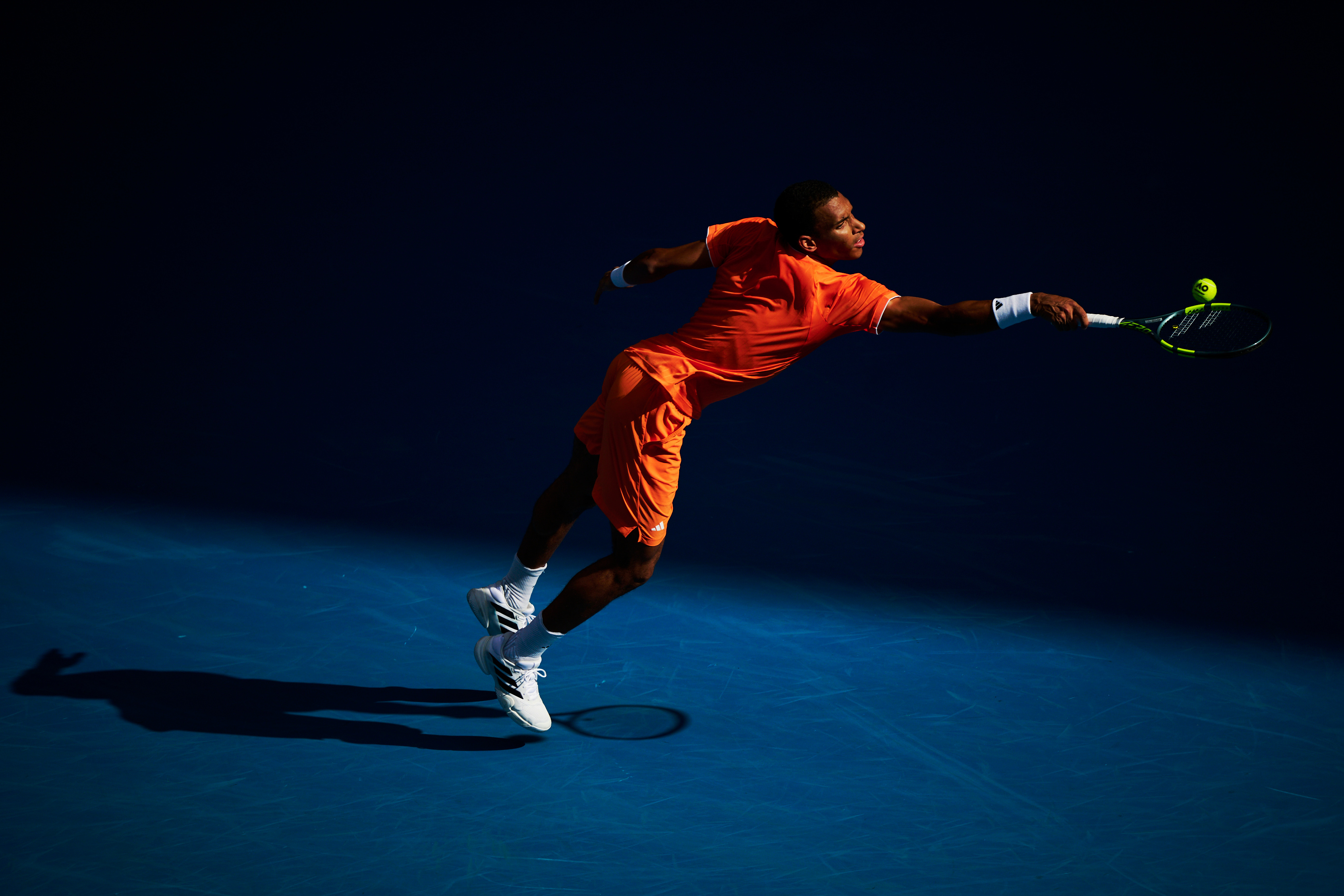 黑暗中的的一抹亮色,光影中的网球新王辛纳氛围感十足!澳网大戏明天拉开帷幕!摄影:
