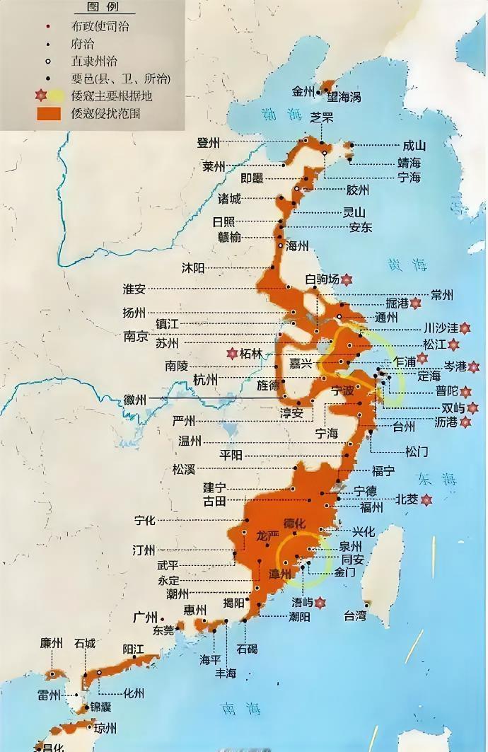 其实明朝时期的倭寇肆虐很严重!!!并不是小范围的袭扰侵略,而是在大明帝国漫长的海岸线上都有倭寇的身影,我原以为只是几个据点结果发现这么严重,了解后却发现完全不一样,大长了见识。 据相关史料记载,明朝百姓被倭寇:久居沿海,无恶不作,对明朝女子随手搂入怀里纵情轻薄“裸形戏辱之状,惨不可言”“破浙东、杭、嘉、湖、苏、松、常、镇、淮、扬至南通,州诸沿江郡县不下数百处,杀伤人歴民百余万。守土以丧地被逮,总师以失律受诛者无数”