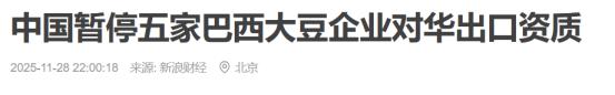解释不清了!2025年11月28日报道,中国暂停5家巴西大豆企业对华出口资质!只