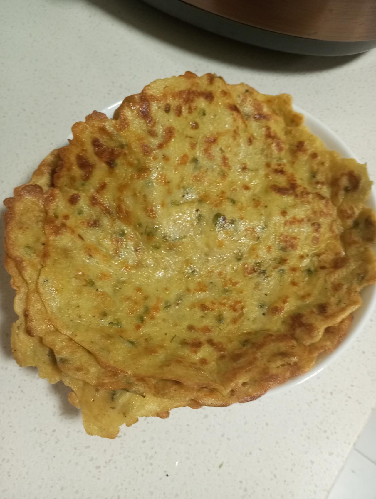 又是霍霍面粉的快乐一天 周末宅家,最治愈的事就是跟面粉死磕到底。 今天解锁的是葱花鸡蛋软饼,面糊里撒上一把切碎的小葱,热锅一摊,滋啦滋啦的声响里,葱香混着蛋香直钻鼻子。看着面糊在锅里慢慢凝固、上色,边缘微微卷起焦脆的边,成就感直接拉满。 刚出锅的软饼外酥里嫩,咬一口满嘴都是烟火气。配上一碗小米粥,就是最踏实的早餐。虽然卖相不算完美,但自己做的饼,怎么吃都香。 生活的快乐有时候很简单,就是在烟火气里,把普通的日子过得热气腾腾✨