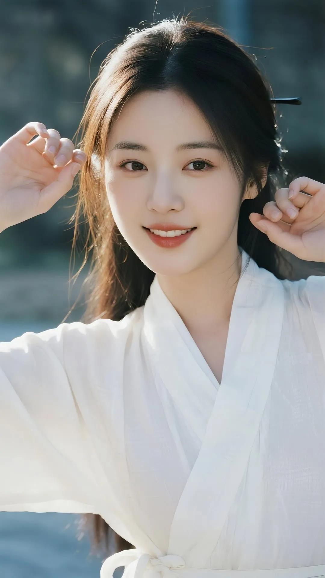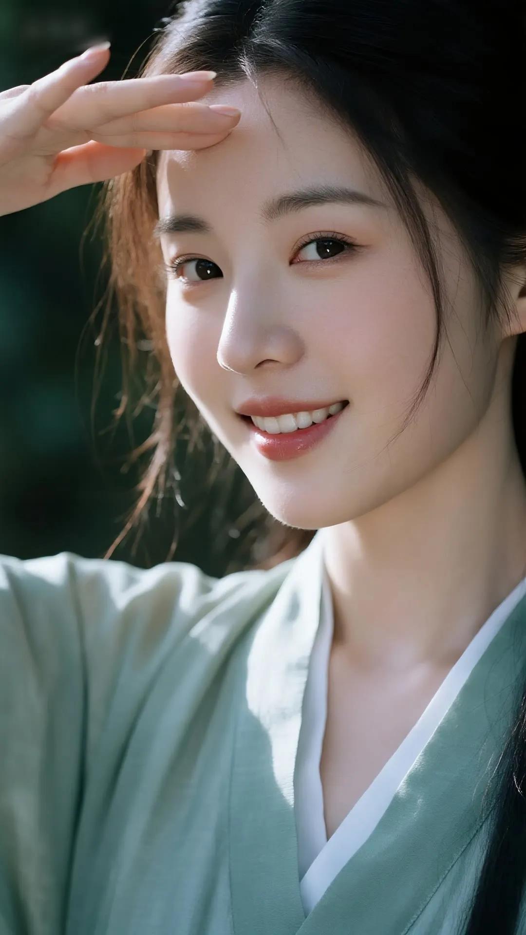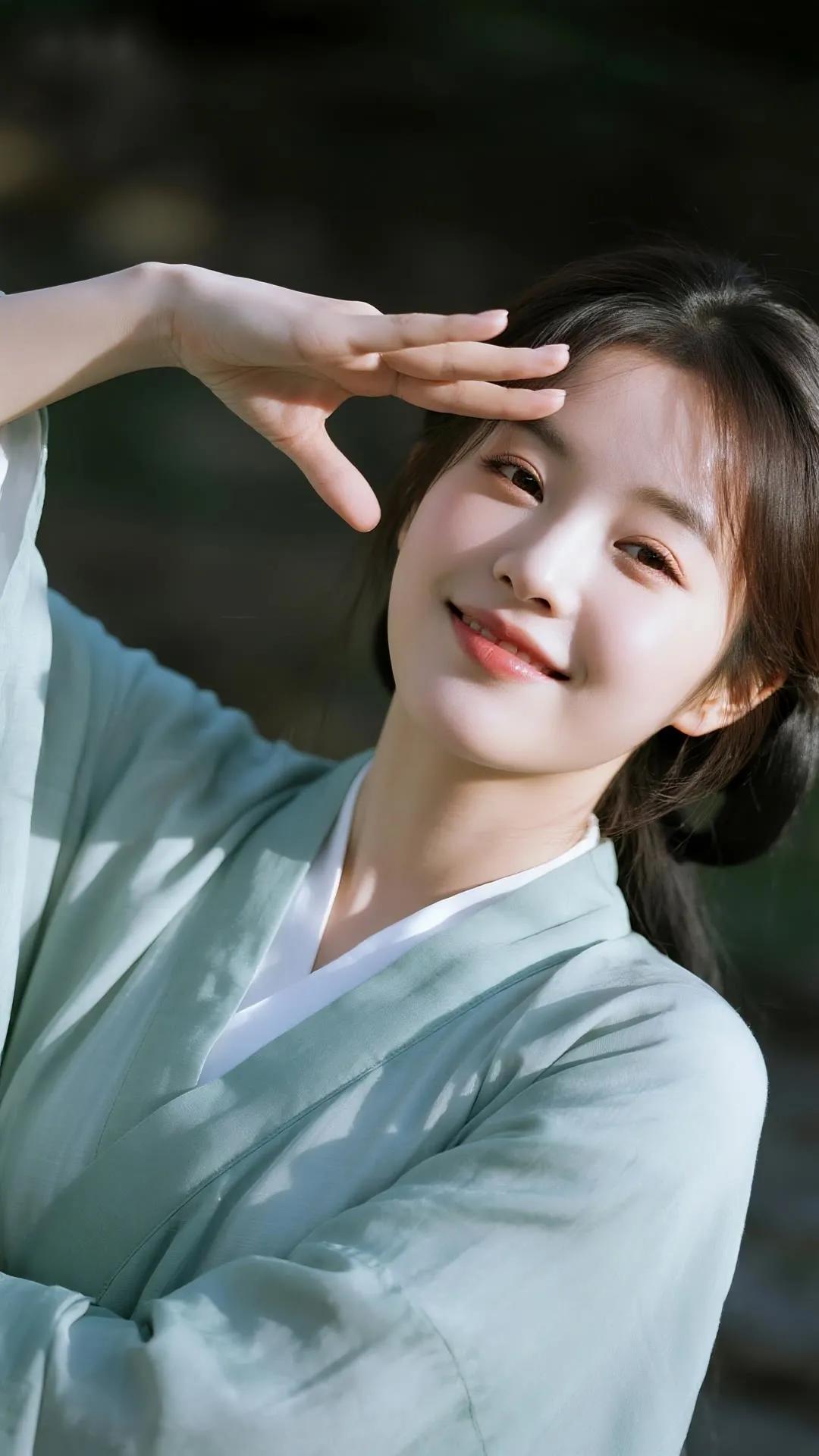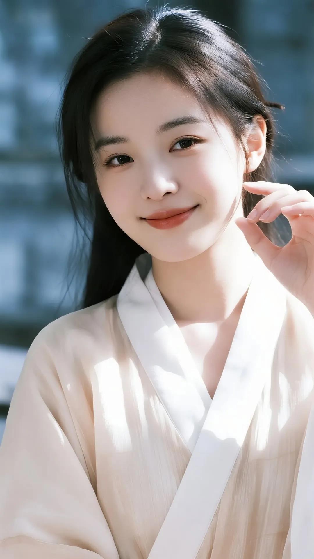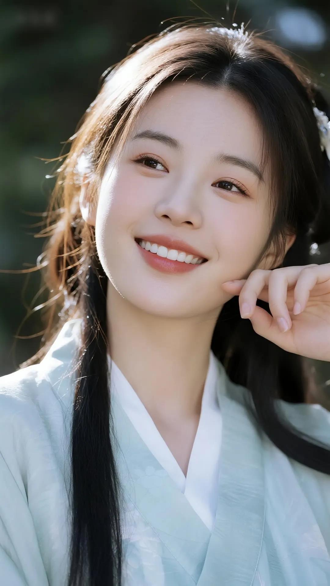 温柔古风少女,浅笑如春,轻纱拂面,古典韵味十足。