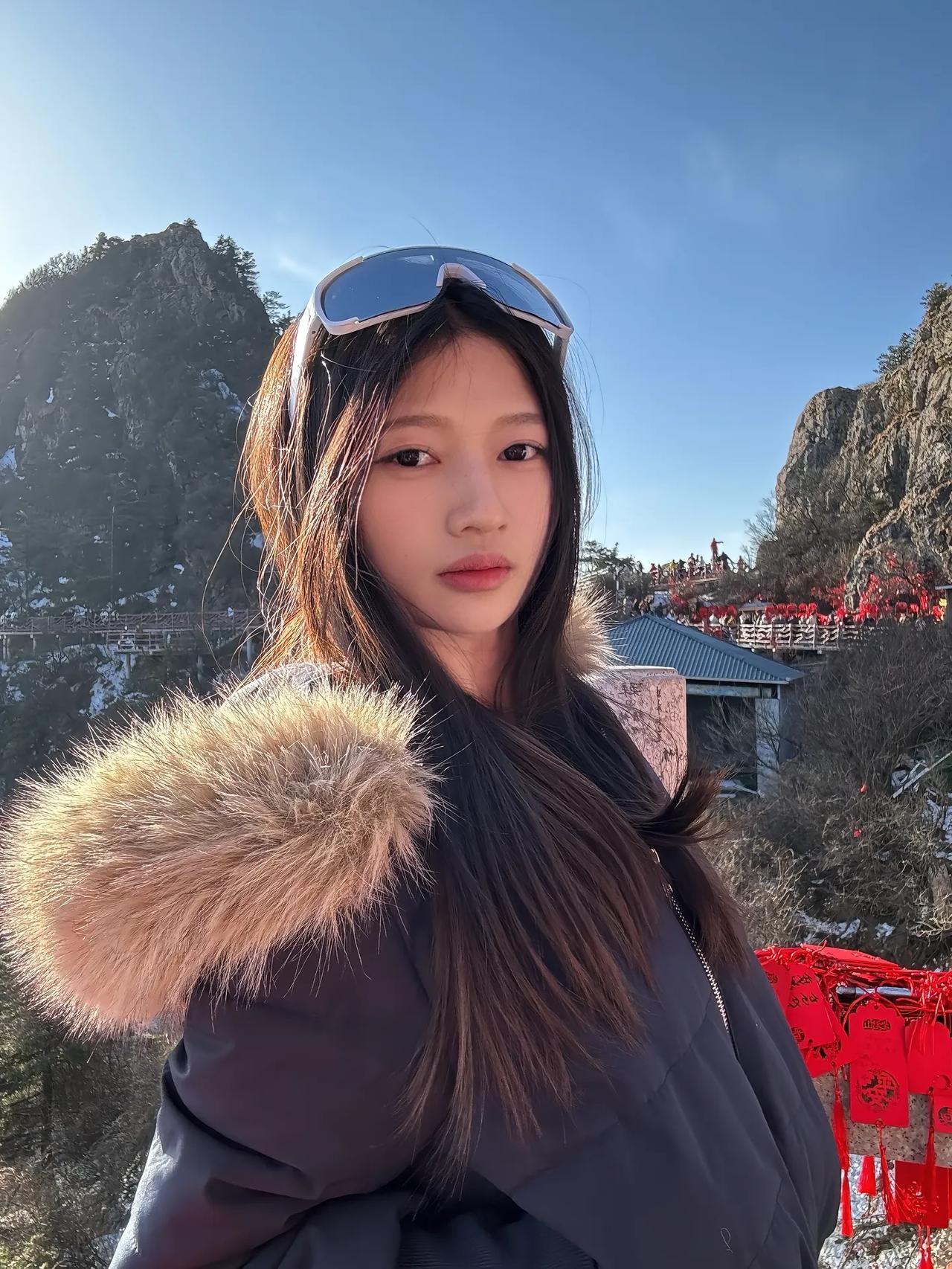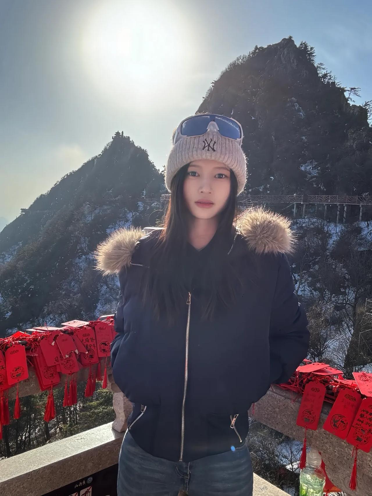 冬日暖阳下的山巅,红丝带飘扬,愿你平安顺遂。