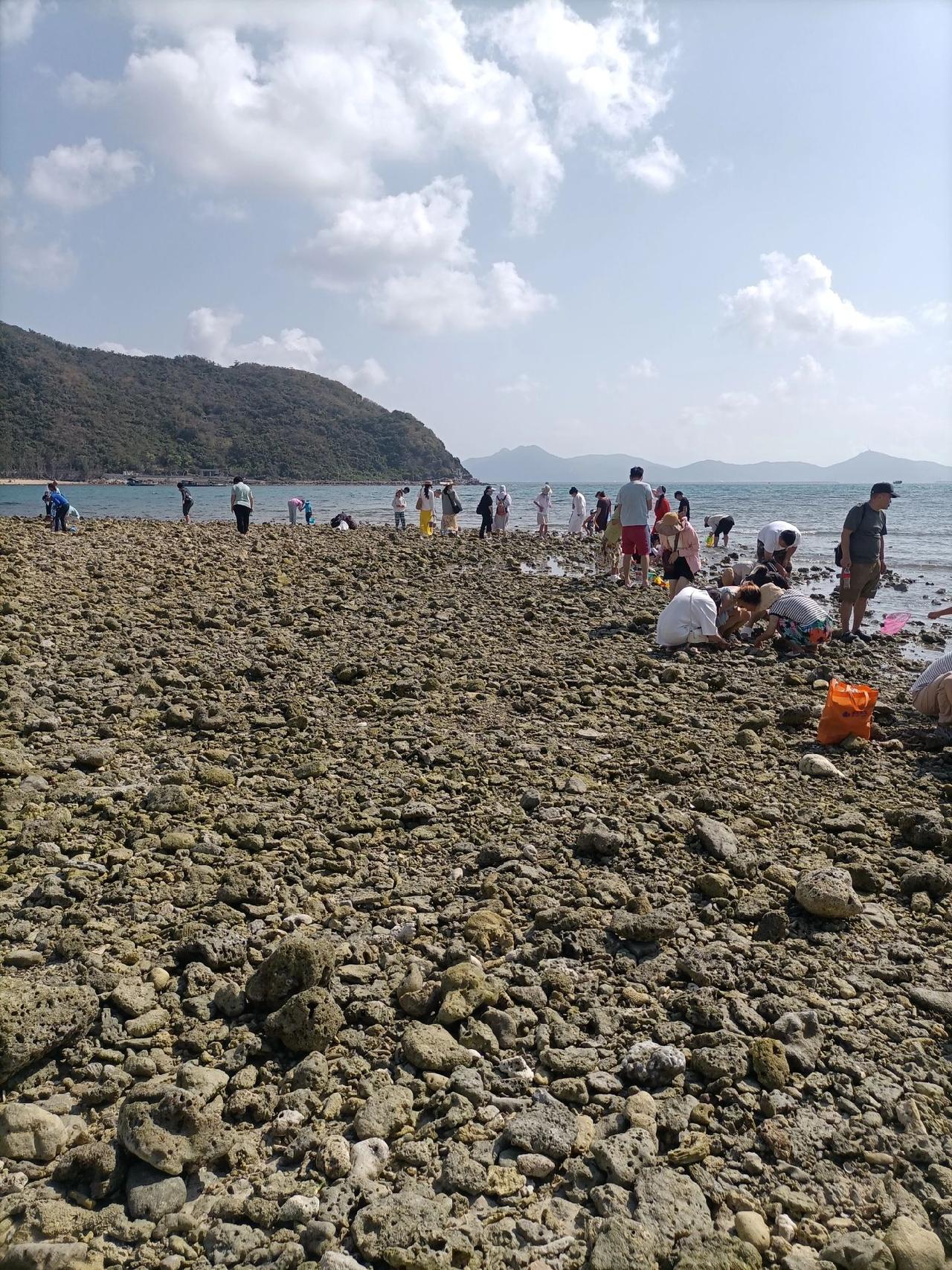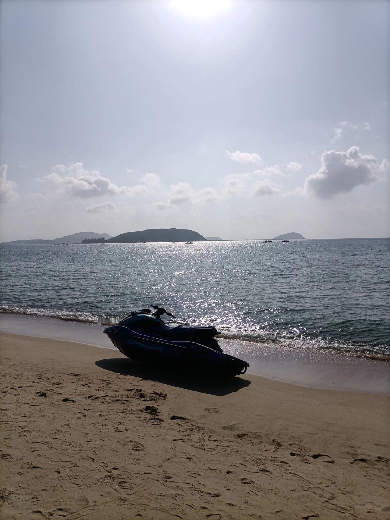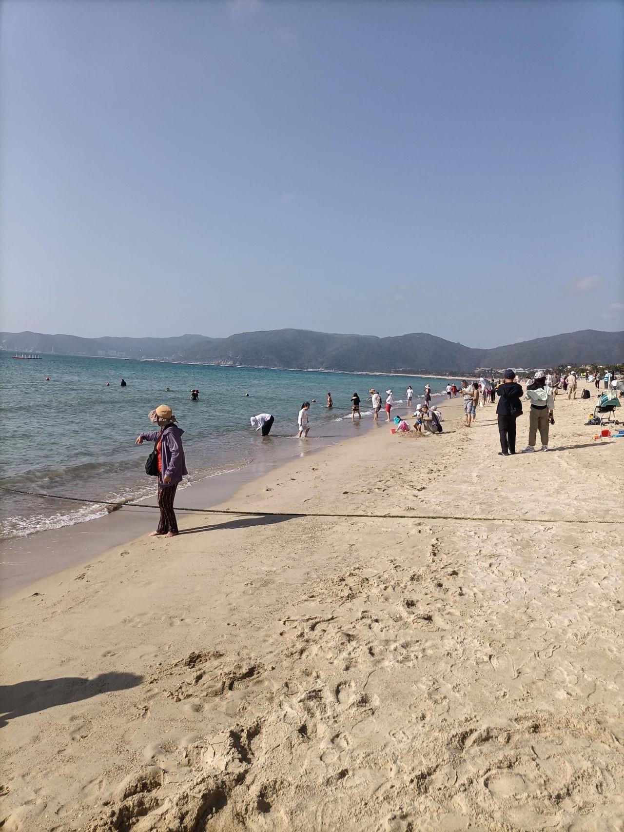 海南第一湾,亚龙湾海滩,进门处的图腾立柱和前景(图1-2),群山环绕着湛蓝的海湾,远方的帆船、帐篷和躺卧的 kitty猫(图3),在湛蓝的天海一线映衬下,格外的宁静和瑰丽。海浪退潮留下的摩托艇静静地躺在沙滩上(图4),风景如画。海滩上熙熙攘攘,很多人在捡着海石和贝壳(图5-6)。 听说小东海海滩(图7-9),是三亚必去的好玩之地,海湾不大,但风景秀丽,一堆堆的人们正在抓着小蟹小虾;我们也抓了几只小小的寄居蟹,寄居蟹太好玩了,背着螺壳伸着小蟹脚,爬起来速度飞快;我们把五六只寄居蟹养在小水瓶里都送给了小朋友。 海南 三亚 亚龙湾 海