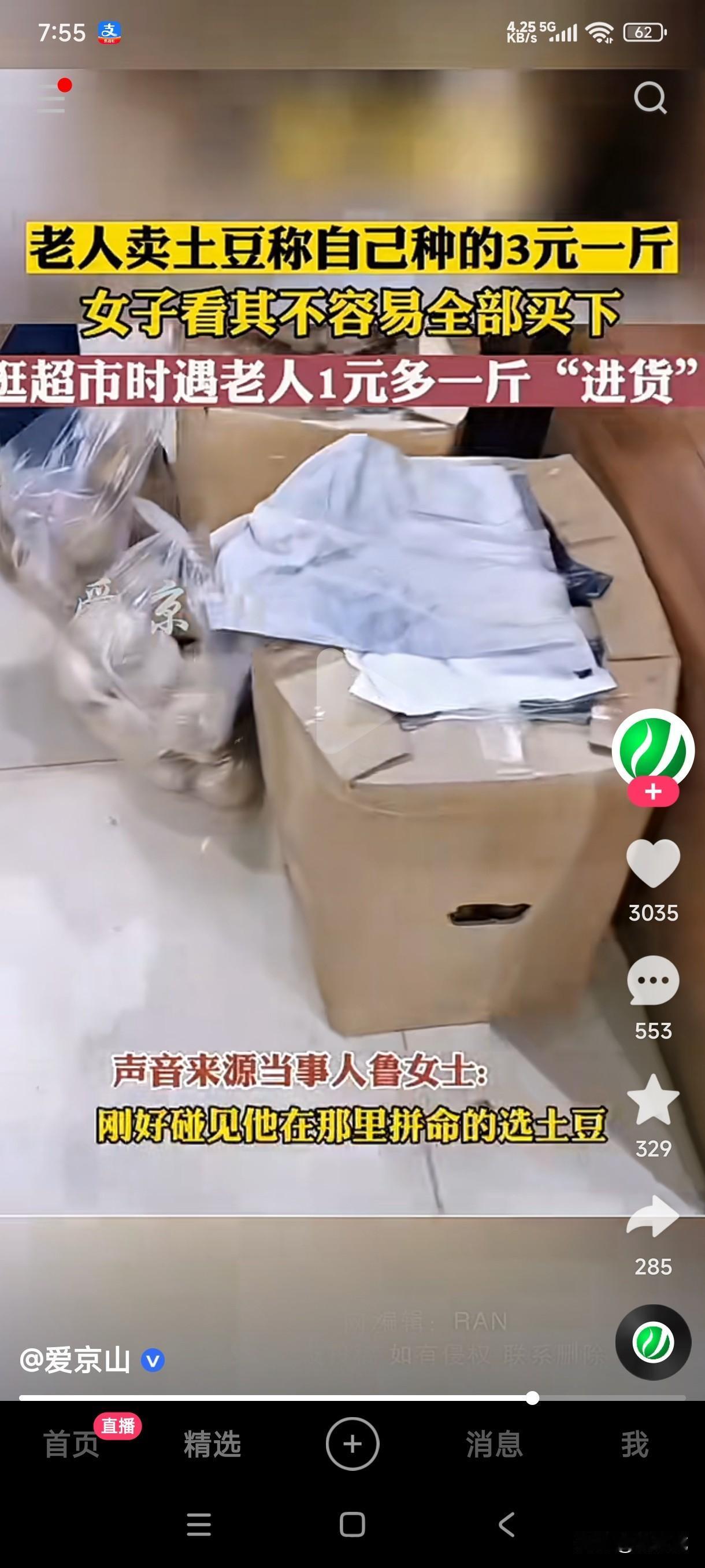 女子看到老人在卖土豆,声称是自己种的3元一斤,女子看老人不容易全买了,逛超市时却看到老人在超市批发土豆,一斤土豆才1元多! 善良的人总是容易被骗,这个世道最不缺的就是上当受骗的人,本以为自己看到卖东西的人不容易,觉得他们也可怜,谁知道当事情的真相浮出水面时,最大的冤种,最可怜的那个人才是自己,价格的贵贱先不说,最恨的是不是发现到头来被人骗了?自己的善良和好心肠在人家眼里一文不值,这是不是被骗的太憋屈了?种种原因迹象表明,不是这个世间善良好心之人绝种了,而是善良之人被骗怕了不是吗?