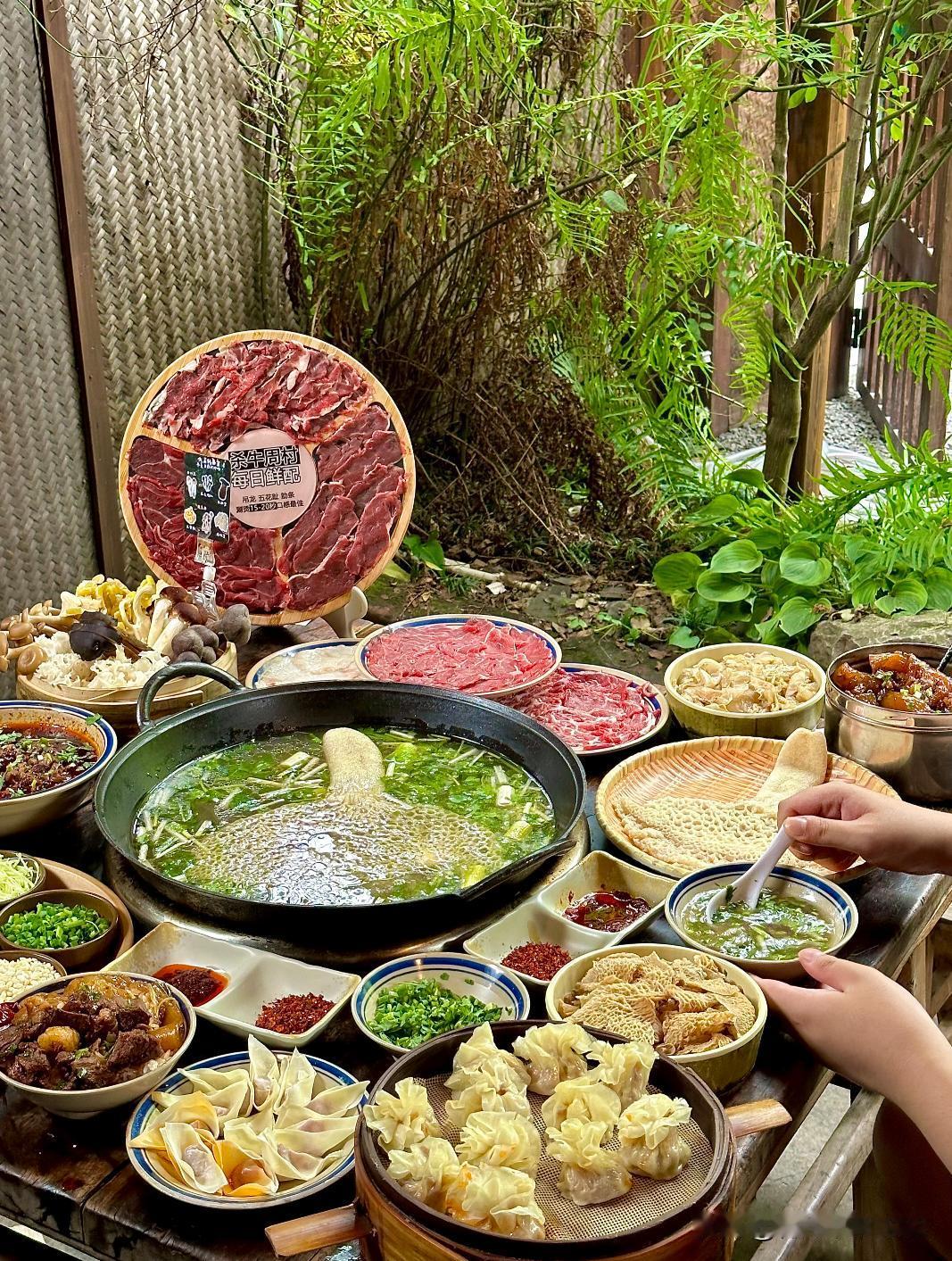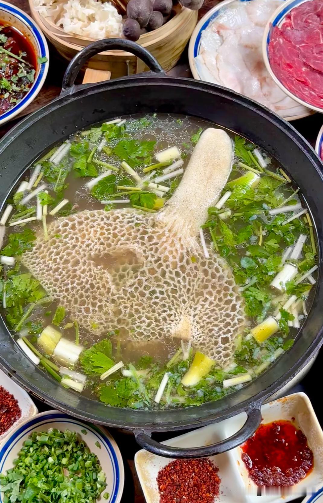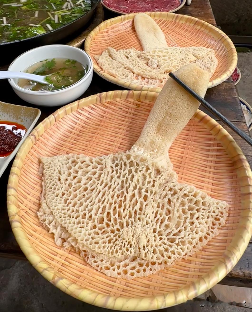 为了这口,我能再去乐山99次。。。。。。 来乐山前做了很久美食攻略,特别是苏稽古镇这边吃的太多了,很难选择🥹🥹!!最后决定去这家藏的很深的百年老宅里吃跷脚牛肉!! 进门可以先点两个现炸的鲜肉锅盔(实在太饿的情况…)!锅底我们选的清汤,真的很鲜,可以先喝一碗汤,也可以煮了菌子后再喝汤,两种味道都可以尝试!长裙竹荪真的很少吃到,还有竹胎盘,真是开了眼😅😅! 牛肉都是看着现切的,吃起来口感真的不一样!还有烧的牛肉和牛筋,巨下饭! 没有一道踩雷的,全部吃完了,拍了很多美食的照片,分享给大家!!!
