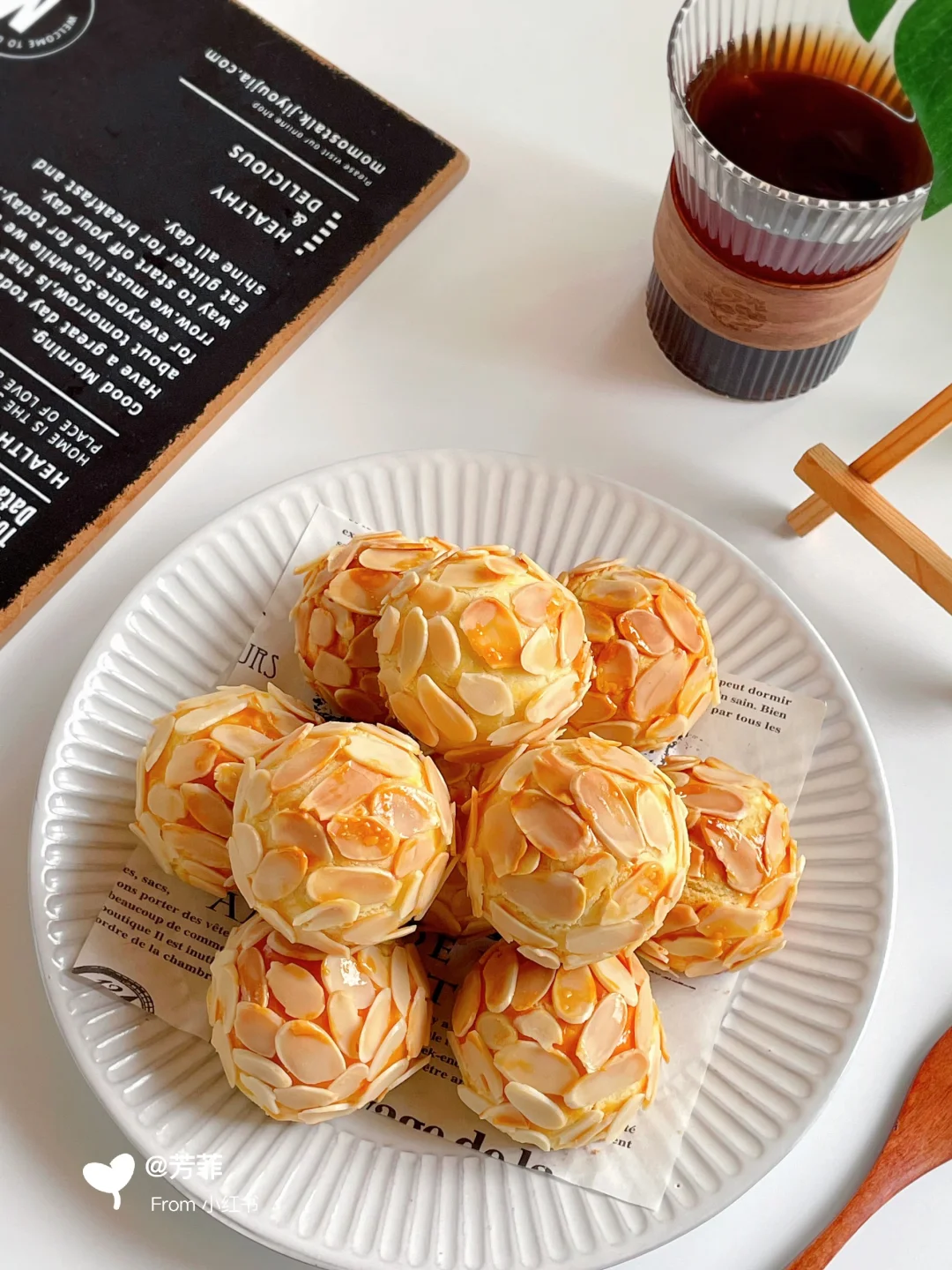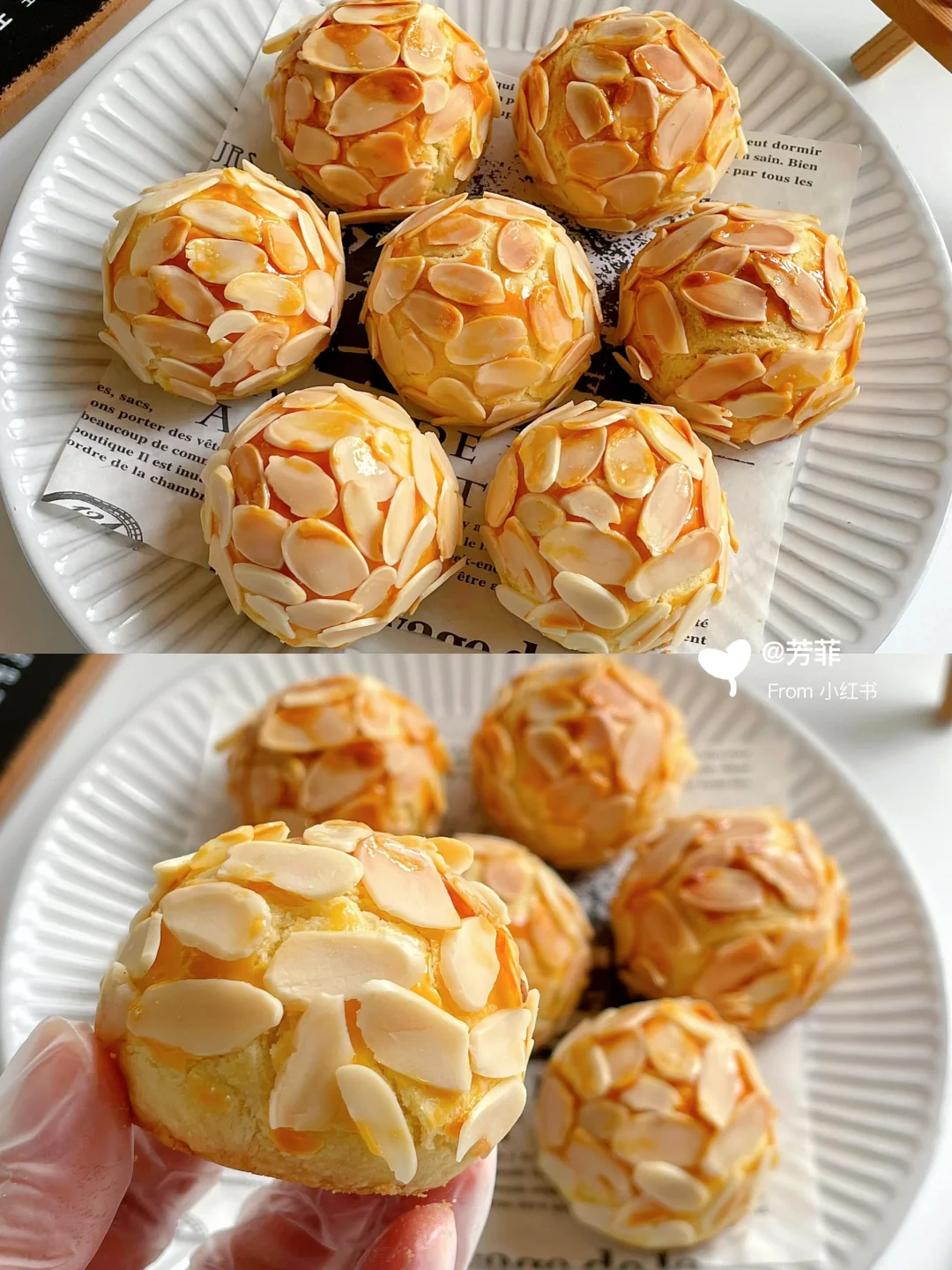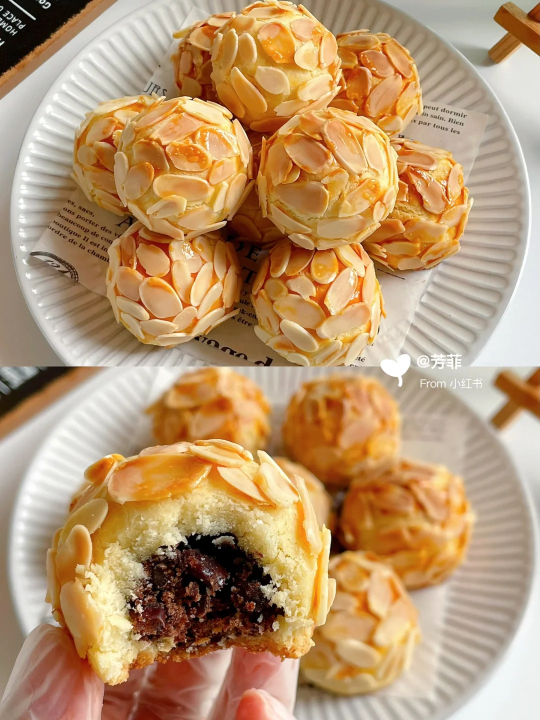 ♨️♨️烤好的杏仁酥香迷糊了,酥脆的杏仁片和奶香酥皮还有香甜红豆馅的搭配,一口下去绝了!巨巨好吃👯快做起来吧