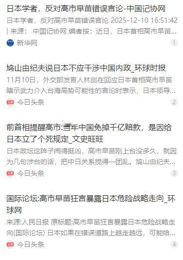 日本前首相鸠山由纪夫发火了!说当年中国放过日本战争赔款,是因为中国自己的决定,但现在的高市早苗却偏要拿台湾说事,声称出了状况就要参战。 麻烦看官老爷们右上角点击一下“关注”,既方便您进行讨论和分享,又能给您带来不一样的参与感,感谢您的支持! 日本首相高市早苗的一番涉台言论在中日两国乃至国际社会掀起轩然大波。作为日本政坛右翼势力的代表人物,她在国会答问时公然将台海局势与日本的 “存亡危机事态” 挂钩,宣称若中国大陆对台湾动用武力,日本自卫队可能行使集体自卫权,这相当于直白表态要介入中国内政。 这番言论绝非普通政客的随口之言,高市早苗的首相身份和自卫队最高指挥官的职权,让其危险言论具备了特殊的政治分量。要知道,日本宪法本就规定永远放弃发动战争,“专守防卫” 原则更是明确只有自身遭受武力攻击时才能动用防卫力量。 但 2015 年安倍晋三内阁通过新安保法案,解禁了集体自卫权,为日本对外动武打开了方便之门。高市早苗此刻重提 “存亡危机事态”,其借台海问题推动扩军、插手地区事务的野心昭然若揭。 这一挑衅言论很快引发强烈反弹,中国驻日本大使馆第一时间提出严正交涉,指出其行为严重违背一个中国原则和中日四个政治文件精神,粗暴干涉中国内政,让人怀疑日本是否要重蹈军国主义覆辙。 而在日本国内,前首相鸠山由纪夫的反应尤为激烈,这位始终主张中日友好的政治人物罕见地连续发声,直指高市早苗的言行是历史失忆和外交冒进。鸠山在社交平台上多次发文,强调台湾问题是中国内政,日本没有任何资格干涉,高市的言论本质上是在制造危机感,为日本扩军找借口。 更引人关注的是,鸠山由纪夫特意提及了一段不该被遗忘的历史 ——1972 年中日邦交正常化时的战争赔款问题。当年 9 月 29 日,《中日联合声明》签署,中国政府出于长远和平考量,主动放弃了高达 1200 亿美元的战争赔款,这笔款项涵盖了 14 年抗战期间中国的巨大人员和财产损失。 鸠山明确指出,中国的这一宽容并非毫无条件,核心前提是日本必须承认台湾是中国领土不可分割的一部分,遵守《波茨坦公告》中关于台湾归还中国的规定。这一约定不是口头承诺,而是具有国际法效力的正式约定,也是中日关系能够正常发展的基石。 他进一步戳破高市早苗的逻辑漏洞,指出其援引 1951 年《旧金山和约》试图制造 “台湾归属未定” 的假象完全站不住脚。因为这份和约是美英单方面主导的,中国从未承认其合法性,而日本在《中日联合声明》中早已明确承诺遵循相关国际文件,承认一个中国原则。 鸠山由纪夫痛批,日本享受了中国放弃赔款带来的发展红利,却在如今挥霍中日关系的基础,这种做法极其短视。他以具体事例说明危害,提到因高市的不当言论,已有日本酒店接到上千份取消预订的订单,国家利益正在遭受实际损失。 在他看来,高市早苗等人显然没有意识到,日本根本没有做好为台海冲突付出系统性代价的准备,这种不负责任的言论只会将日本推向危险边缘。 鸠山的批评得到了日本学界和理性派舆论的广泛共鸣。东日本国际大学客座教授西园寺一晃直言,日本军国主义曾多次以 “存亡危机” 为借口发动侵略,如今重提这一说法,只会唤起亚洲国家的痛苦记忆。 庆应义塾大学名誉教授大西广强调,《中日联合声明》《波茨坦公告》等文件早已明确台湾的归属,日本必须回到这些文件确立的立场上。冲绳大学研究员泉川友树更是直接指出,高市的言论不仅破坏中日关系,还可能让日本陷入战争,极其危险。 面对各方压力,高市早苗曾宣称日方在台湾问题上的基本立场与 1972 年《中日联合声明》一致,但这种表态避重就轻,并未明确撤回之前的错误言论,也没有承认自身说法的不当之处。 日本山口大学名誉教授纐纈厚一针见血地指出,这种含糊其辞的态度正是导致中日关系紧张的重要原因,没有实质行动的口头表态只是敷衍搪塞。 事实上,高市早苗的涉台狂言并非一时失言,而是其长期右翼立场的必然体现。她此前就有否认南京大屠杀、参拜靖国神社、主张将自卫队改为 “国防军” 等一系列言行,充分暴露了其错误的历史观。 近年来,日本右翼势力不断淡化侵略历史、美化战争罪行,在扩军备武的道路上越走越远,提前修订《国家安全保障战略》、大幅增加防卫费、放宽武器出口限制等举动,都显示出日本正在脱离战后和平发展轨道。 鸠山由纪夫的连续发声,恰恰是对这种危险倾向的警醒。他多次强调,中国当年放弃战争赔款是为了促进和平,而不是让日本忘记历史债务,日本必须正视历史,尊重中国的核心利益,才能避免重蹈覆辙。