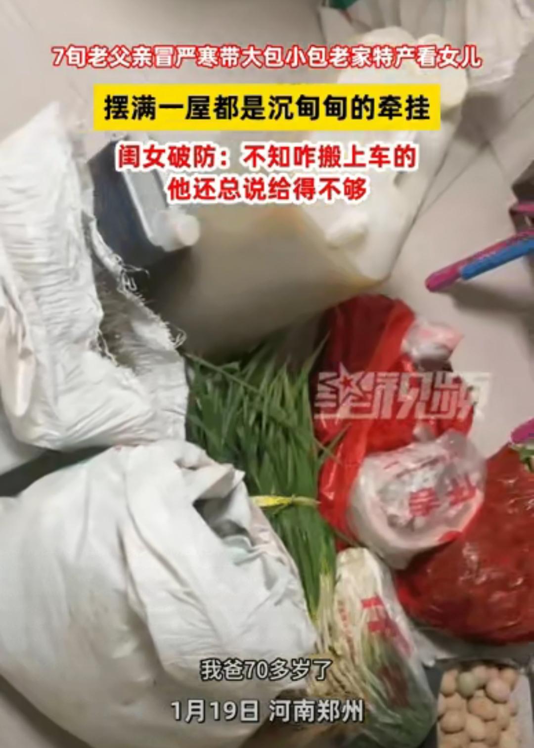 谁看了不心头一暖!河南郑州这一幕,直接戳中所有在外游子的柔软心底!75岁老父亲顶着零下10度的严寒,跨250多公里大巴给女儿送土产,这哪里是一后备箱的吃食,分明是父母刻在骨子里的,想把全世界的好都塞给孩子的执念。 我们总说父母的爱笨拙,可这份笨拙里藏着最极致的用心,他们记挂着你的三餐,惦念着你的冷暖,哪怕年事已高、路途艰险,也总想把自己亲手弄的、最放心的东西送到你面前。在父母眼里,不管你多大、走多远,永远是那个需要被照顾的孩子,他们的爱从不会因距离和年纪降温,反而在岁月里愈发厚重。 这份藏在烟火气里的爱,从来都是我们在外打拼最温暖的底气,父母从不要我们的回报,只愿我们平安顺遂。你有没有被父母这份毫无保留的爱,突然戳中内心的瞬间?