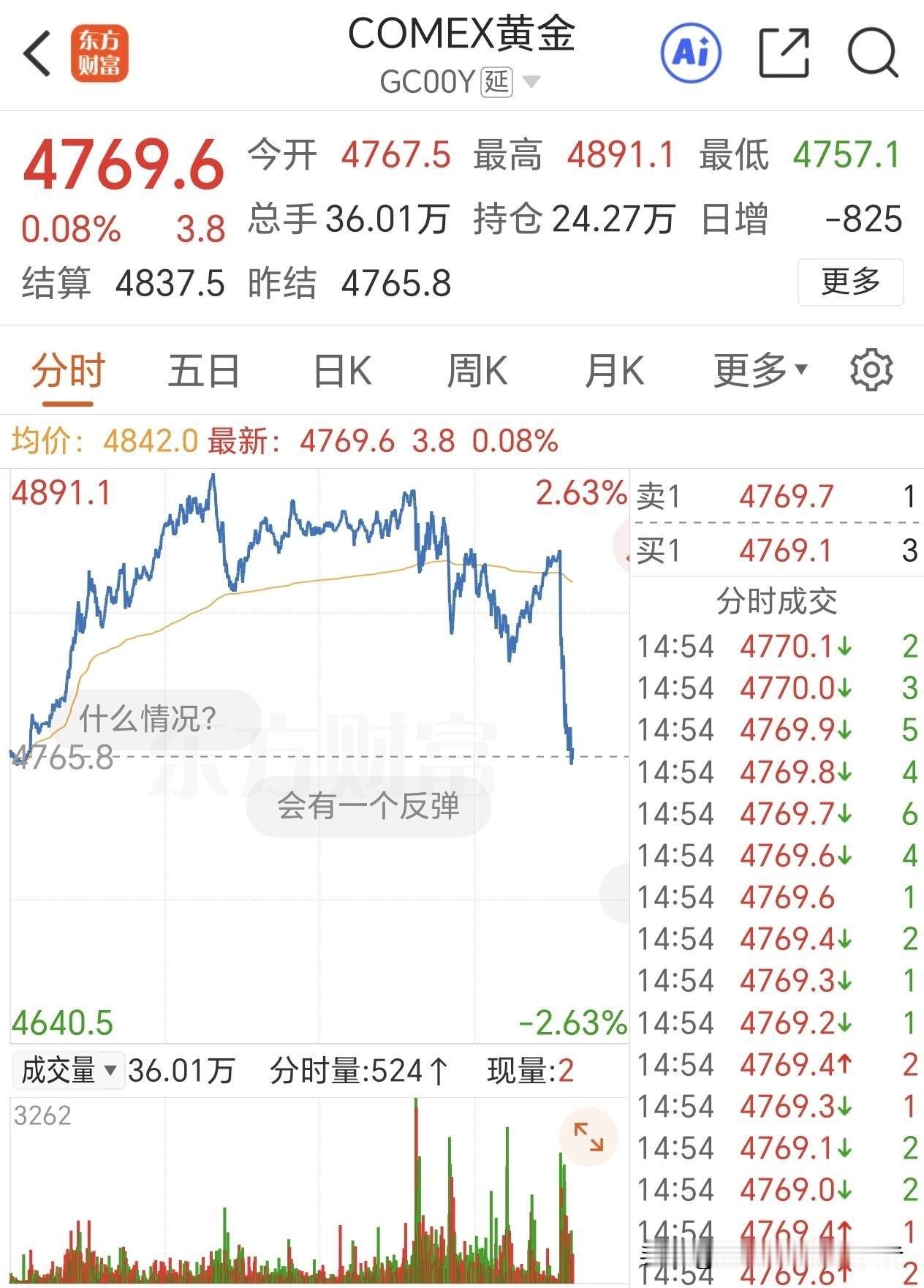 股市有点怪,黄金也跳水:我的周四早上 凌晨四点,手机响了,股市涨了,真吵醒人,美国那边涨不少,黄金跌了,有点意外,之前黄金涨到4891,不知道什么单位,现在跌到4769了,有点慌,感觉要出事,黄金股要跌了吧,周四就这样,有点烦,大家都觉得黄金不行了,有色也不行了,短期要休息,那钱去哪呢,都猜别的股票,也不知道对不对。 我希望股市涨,大家都希望吧,像川普一样,他也喜欢股市涨,涨了大家好,都开心,反正我希望涨,就这样吧,今天就这样了。