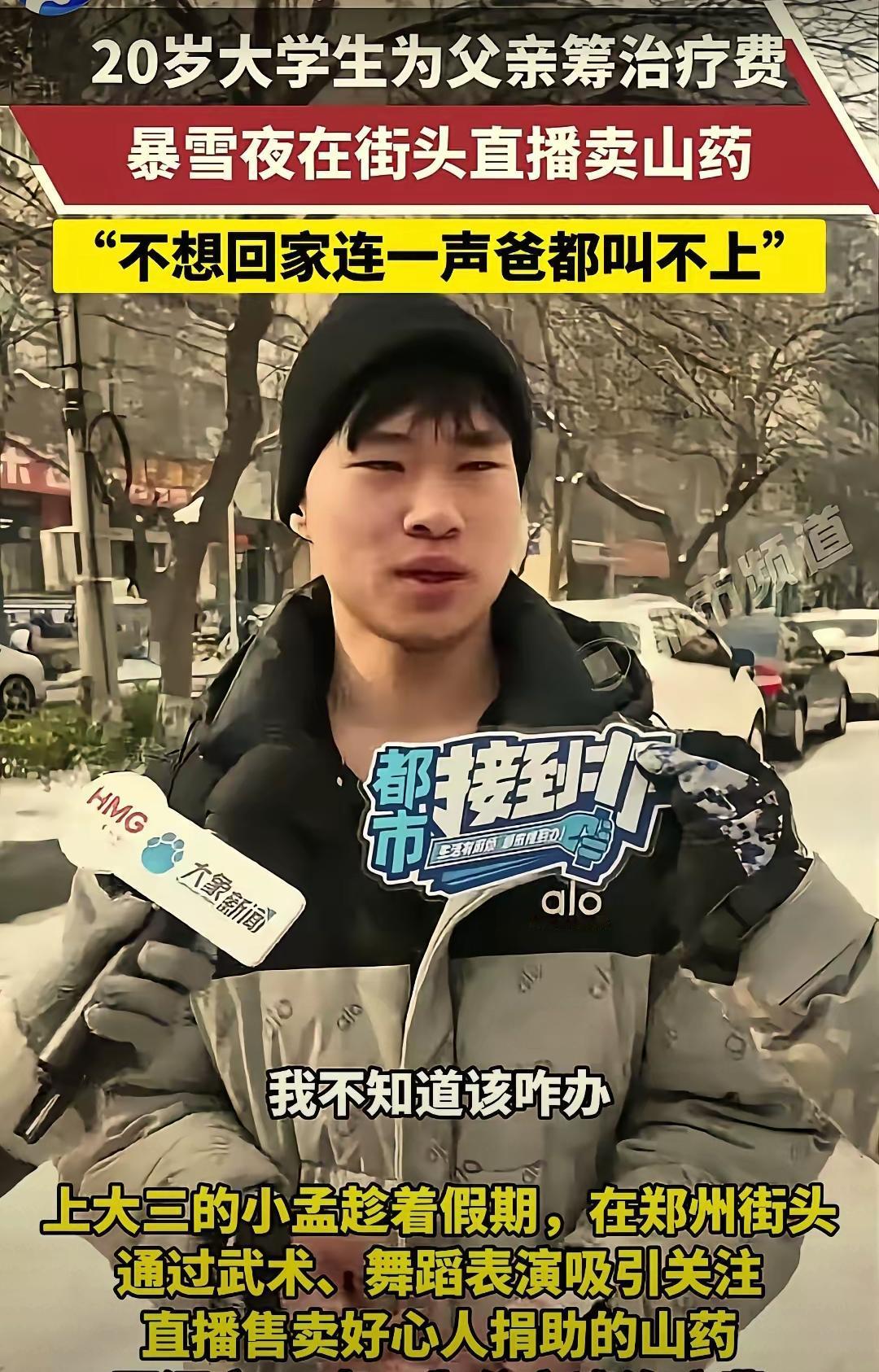 太心酸了!郑州大雪夜的街头,20岁男生冻得双手通红直播卖山药,没人想到这不是博眼球的戏码,而是一个少年用尽全力守住家的模样,更没人料到这份倔强里,藏着最动人的人间温暖。总有人说00后扛不起事,可小孟在母亲离世、父亲重病进ICU的绝境里,愣是没低头,不靠单纯的募捐乞求,只凭卖山药的劳动换希望,这股不啃善的骨气,比任何华丽的话都戳心。他的坚持也换来了双向的善意,昔日帮过他的好心人再次伸出援手,路人专程捧场,陌生人的温暖成了他撑下去的底气。这哪里是一个人的战斗,这是善良的相互奔赴,是普通人在生活泥沼里,彼此托举的温柔。20岁的他用行动证明,真正的成长从不是年龄,而是扛起责任的勇气。你被这份少年的坚韧和人间的善意打动了吗?