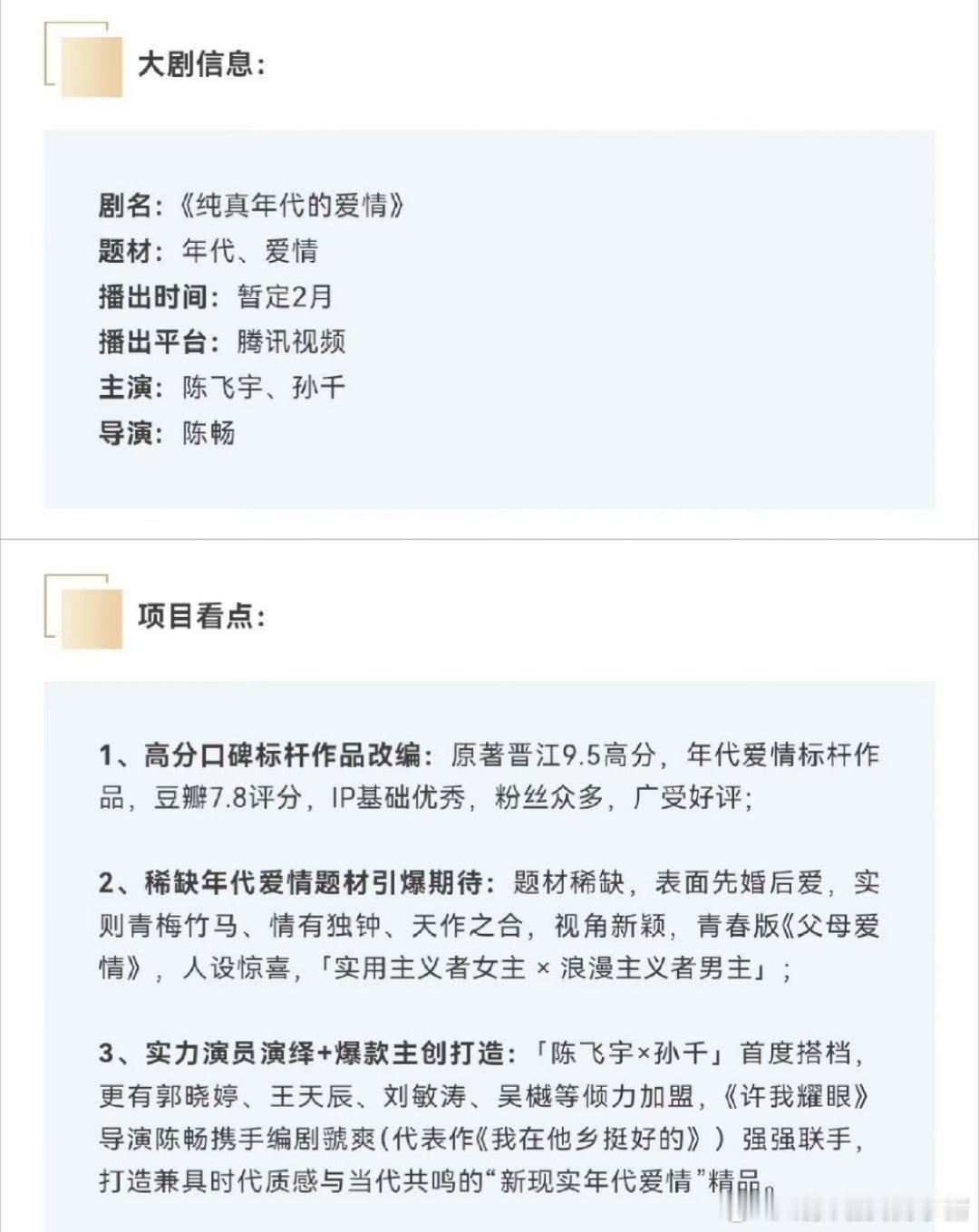 陈飞宇纯真年代的爱情播前招商,2月播出