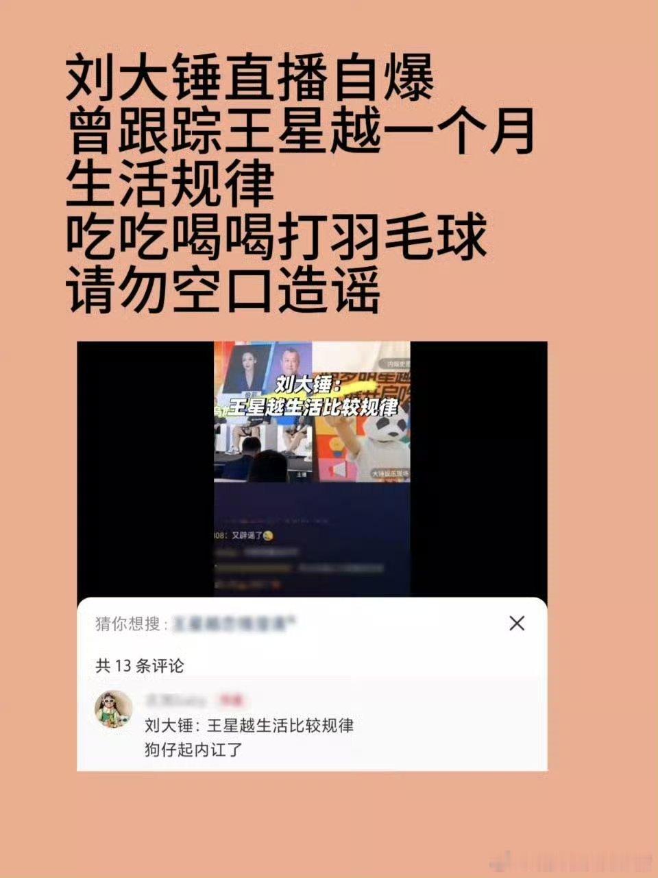 感觉刘大锤直播纯靠编,之前还说王星越生活规律。。。