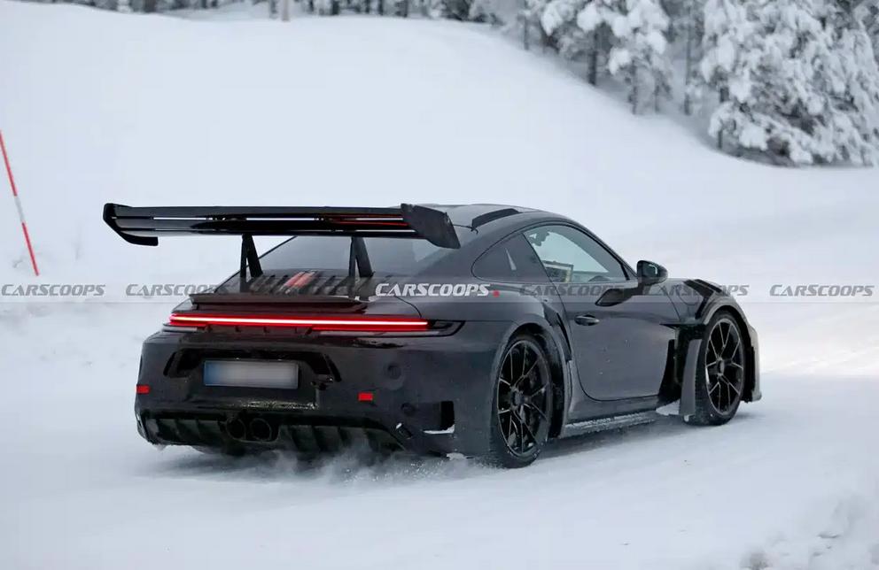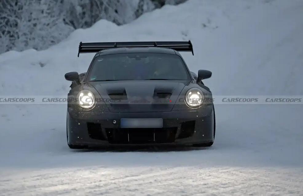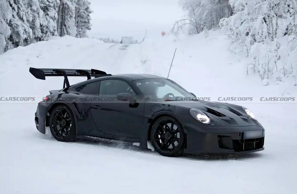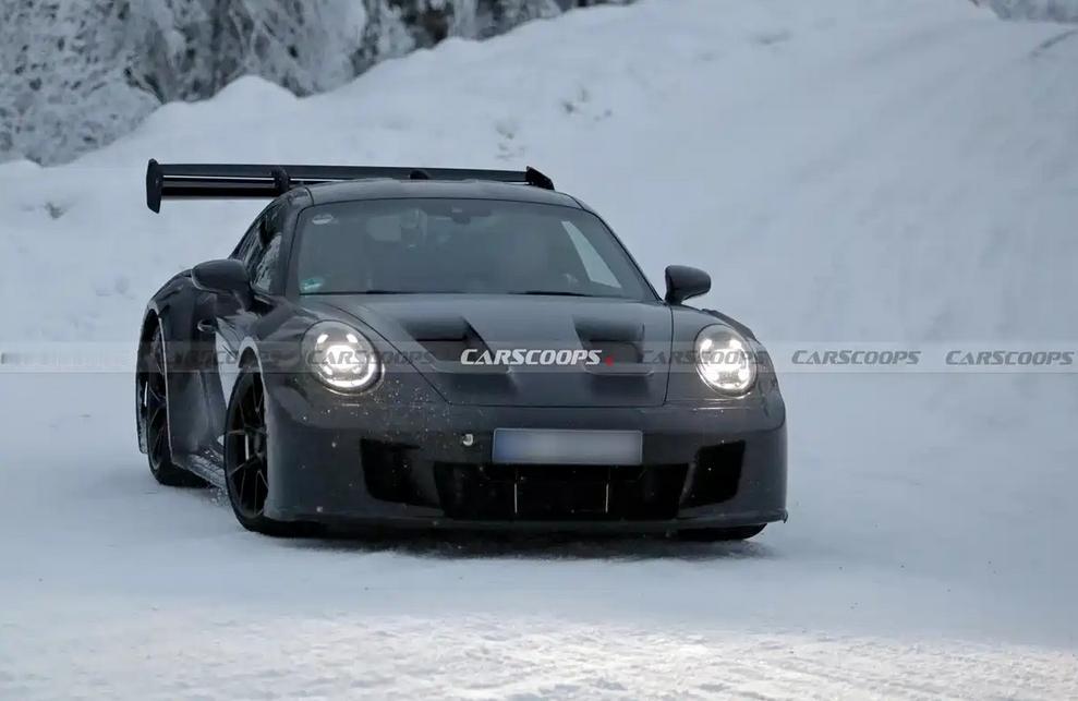 日前,我们获得了一组新款保时捷911 GT3 RS的最新谍照,测试车已经基本褪去了伪装车衣,外观已经呼之欲出。动力方面,此前曾有传闻表示该车或将搭载一台涡轮增压发动机,不过这一消息尚未得到官方证实,还有待进一步公布。 来看谍照,前脸我们惊喜的发现,新车的大灯组设计进行了更新,四点式日行灯外围增加了环形灯带,颇具延时效果。下包围处依然提供分段式进气口设计,并与前舱盖上方的导流孔进行相连。 车身侧面能够看到宽体效果以及翼子板鲨鱼鳍通风口,车辆尾部则会配备大尺寸扰流板,上方拥有三个翼片,预计能够提供更加精细的空气动力学表现。尾部牌照架上方可以看到类似通风口的饰板设计,不过其具体是装饰还是有实际功能还有待揭晓。下方依然拥有大尺寸扩散器,并配备中置双出排气布局。 新车的动力依然保持神秘状态,作为参考,现款保时捷911 GT3 RS搭载4.0L水平对置六缸发动机,最大功率386kW,峰值扭矩463牛·米,匹配7速PDK变速箱,0-96km/h加速时间仅需3秒。 点个关注吧!汽节车社,车圈热点资讯每日一扫清!【来自懂车帝车友圈】