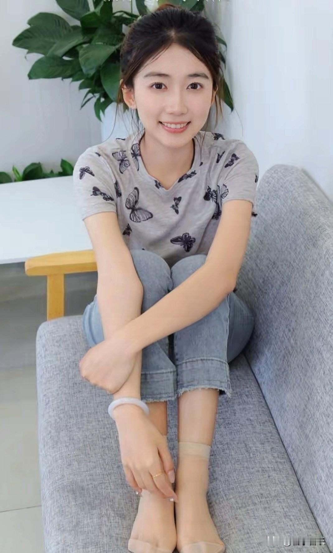 蝶纹T恤衬着清甜笑意,女孩窝在沙发里,眉眼弯弯的模样,温柔又治愈✨发一张你眼中最美的微笑照片 随手拍好图 甜美t恤女 分享一张最近随手拍的照片 手机随手拍 记录美好点滴 用一张图片来记录生活