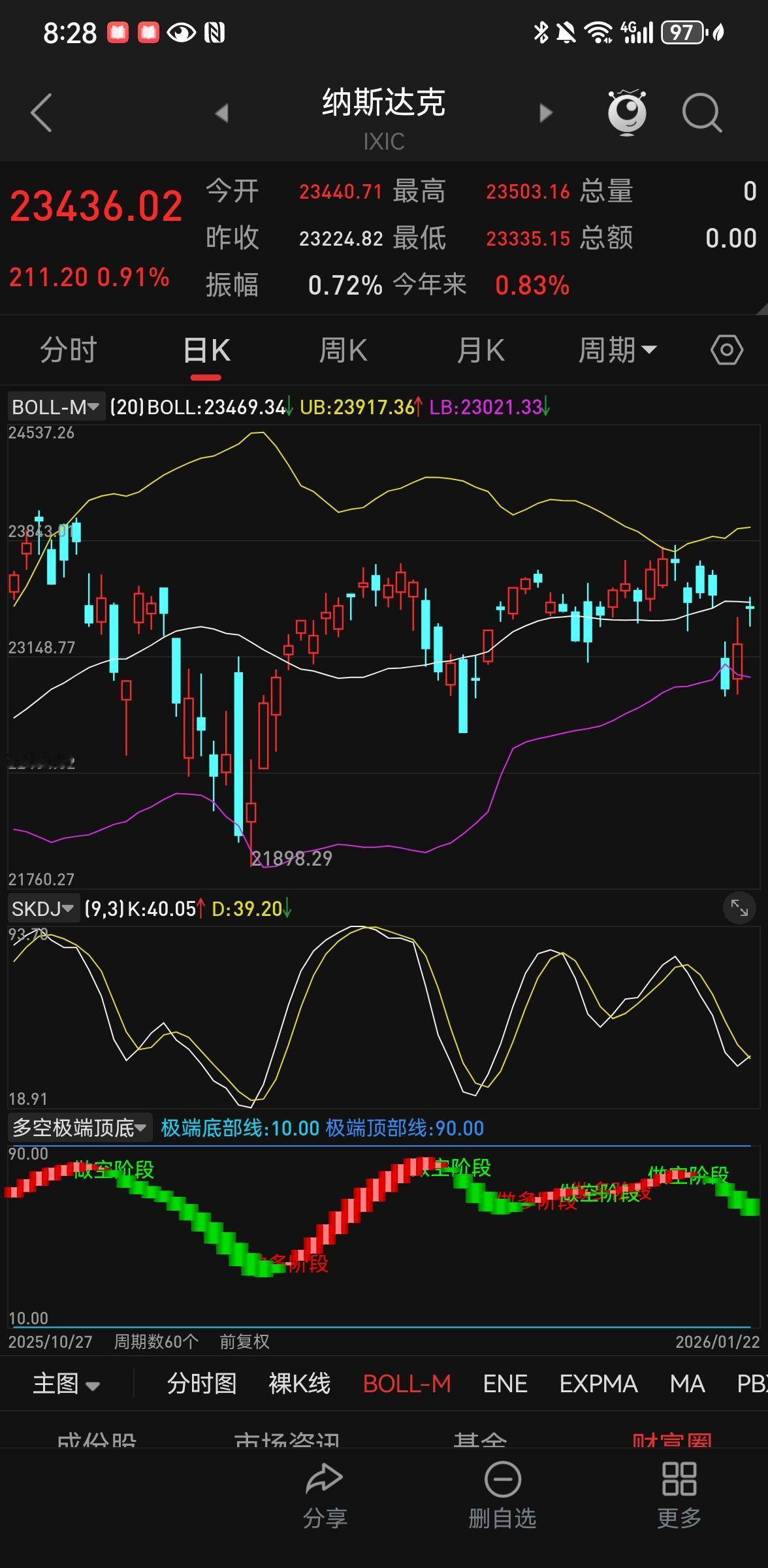 马年又是老马🐴的行情 老马在达沃斯的讲话引爆了太空光伏,前段时间就提醒要关注太空光伏,不知道小伙伴们入场了没有。 今天强势方向光伏设备、商业航天,AI 应用也表现不错!这周初都提醒大家航天和Ai可以下场了!不知道小伙伴有没有跟上节奏!我今天的航天已回本并实现了盈利~所以高点买入也不是啥事,如果下周回调的话我觉得可以继续买入潜伏!至少会平前高走个双头行情再下去,也有可能不下去继续拉升! 半导体已回撤2天了,大方向没有问题,保持卧倒状态,等业绩出来了可能再次拉升! 今天主力与市场进行了5次拉锯战,标准的锯齿形态!走上去打下来,在上再亚!刻意控制节奏!券商也是压缩到标线,随时可能松开弹簧爆发一下,持有证券的不要急,我也在本周买入了证券,即使下跌空间太有限了,上涨概率更大,很可能下周就会起来! 总之今天是轻指数,涨个股的一天大部分赛道都收益不错!相信各位也都吃的不错!可以开开心心过个周末! 这周操作不佳的就是美股走势本来以为2的点跌幅后还会继续下蹲,卖出了10几个本来想蹲下去再买回来!不曾想老特以绵骨掌讲争议与焦虑压缩了大半,不动武,不加税,美股接触焦虑,迅速回升!虽然进行了补仓,但比卧倒不动收益少了!失策! 看下周还是乐观一点!继续年前吃肉行情!