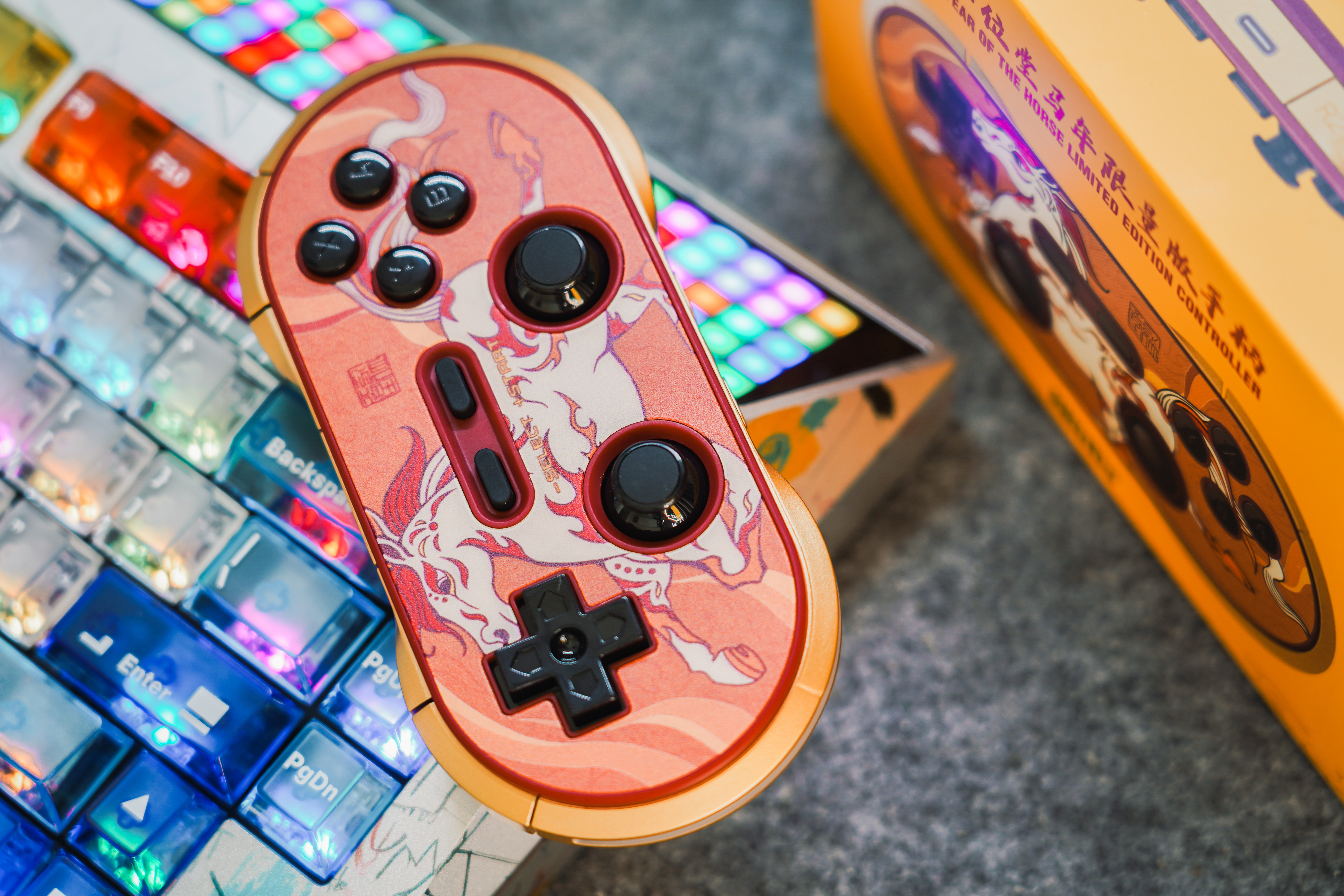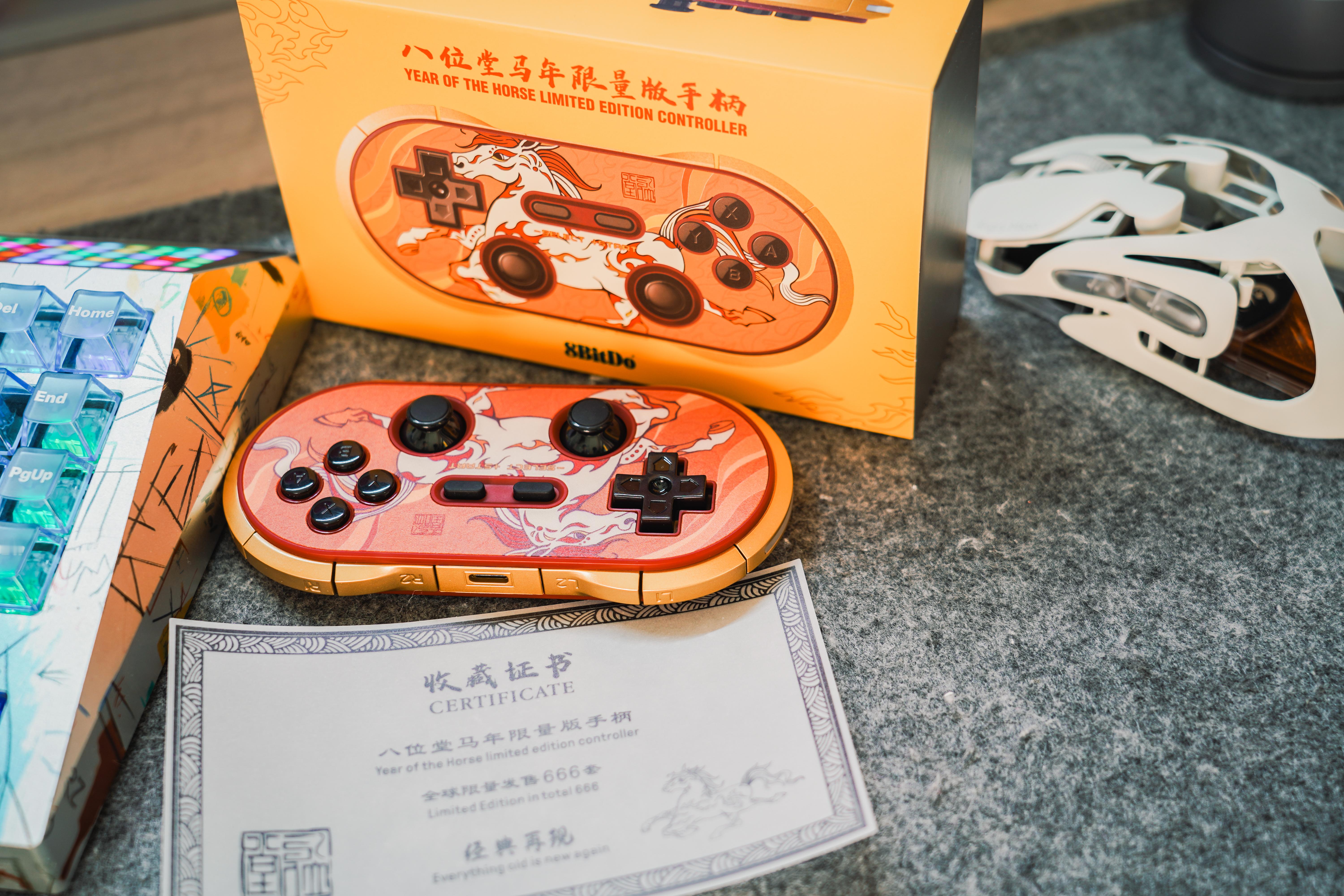 加赏 谁能拒绝一只把东方美学做进游戏手柄的产品?八位堂马年限量版手柄,说白了就是那种“你一拿起来,就知道它不是普通版本”的存在。 骏马浮雕和鎏金祥云不是贴图,加上限量编号,仪式感直接拉满。放在桌面上,它甚至比很多潮玩更像「作品」,当桌搭也很好看的。 手感部分依旧是八位堂的稳定发挥:按键回弹清脆,摇杆阻尼精准,类肤握柄长时间不累。我也就玩玩地平线,轻巧贴手便捷,可玩性高。 这个手柄在保证功能的情况下,尽量的提供情绪价值,更多的是在想文化该怎么落在硬件上。能好看、能用、还能讲故事的手柄。2026马力全开