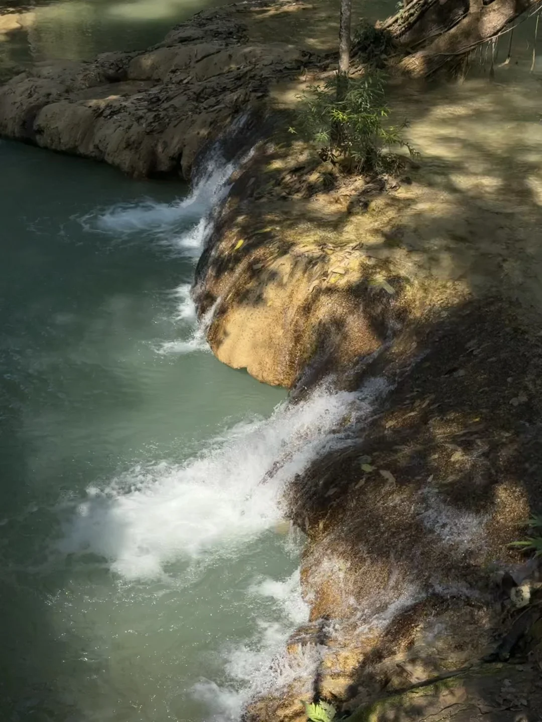 👉:除了瀑布还可以徒步,沿着瀑布的方向前进,可以看到👀一个小的溶洞,喜欢冒险的可以从另外一侧的溶洞爬上去。