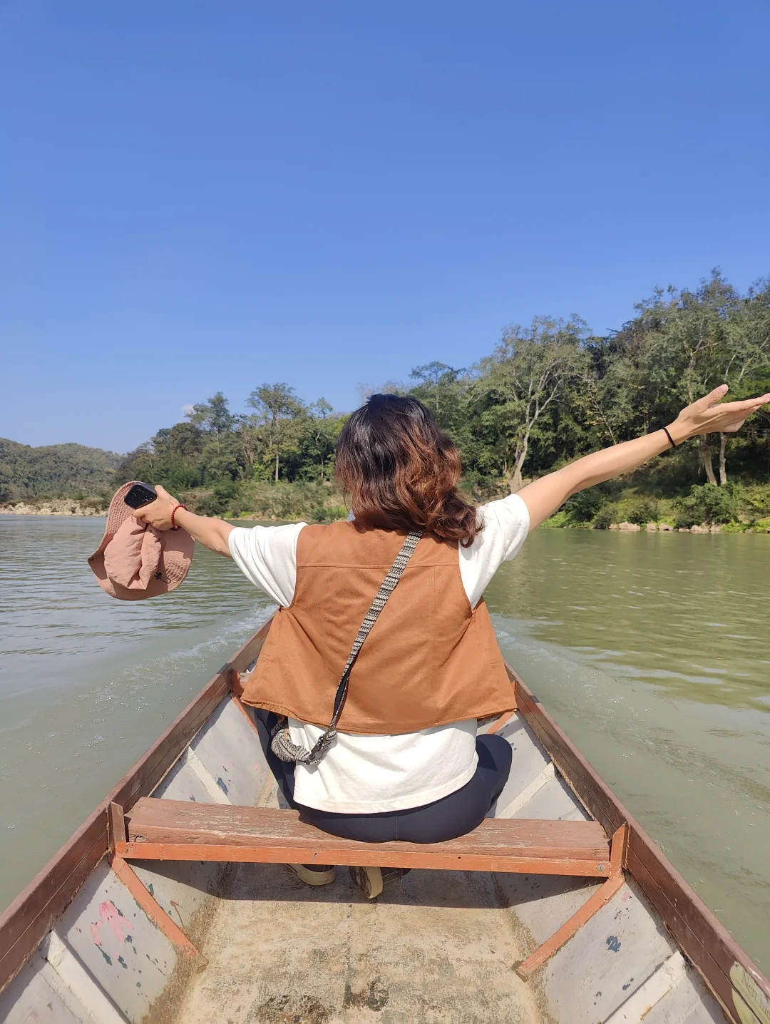 👉乘船抵达:这里不乘坐巴士,而是需要乘坐长尾船横渡南康河。这种体验会让你立刻感受到印第安纳•琼斯式的冒险氛围。