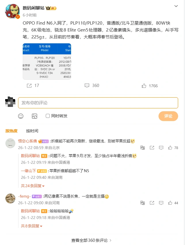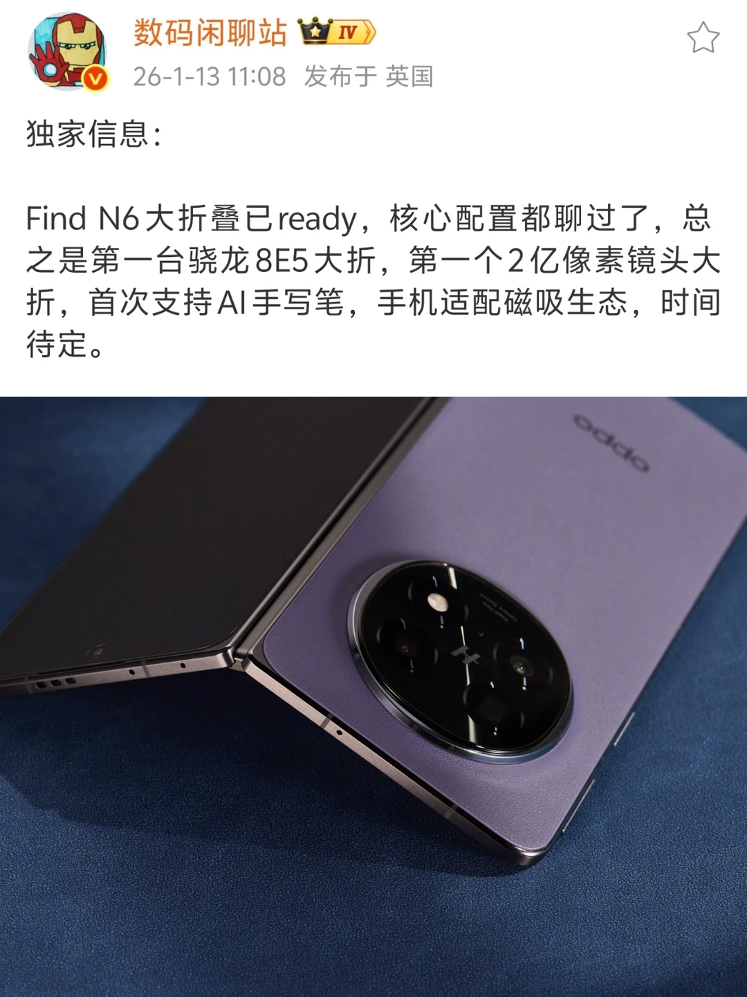 现在买折叠屏就是49年入国军?就是因为后面苹果三星OPPO等等厂商的新机都要来了! 所以个人现在不太建议冲去年的大折叠,因为今年的大折叠升级很大,除了处理器、影像,据说还要实现无折痕视觉效果,比如苹果首款折叠屏和OPPO Find N6! 就拿可能要在春节后发布的Find N6来说,爆料称这机子用上了纳米晶钛合金铰链与动态可变曲率方案,有望超过苹果成为全球首款量产“无折痕”折叠屏,甚至还至少独占半年!还有处理器用上骁龙8E Gen5、影像用上2亿像素镜头,电池提升到6000毫安时级别,依旧全能无短板,大家可以期待一手!