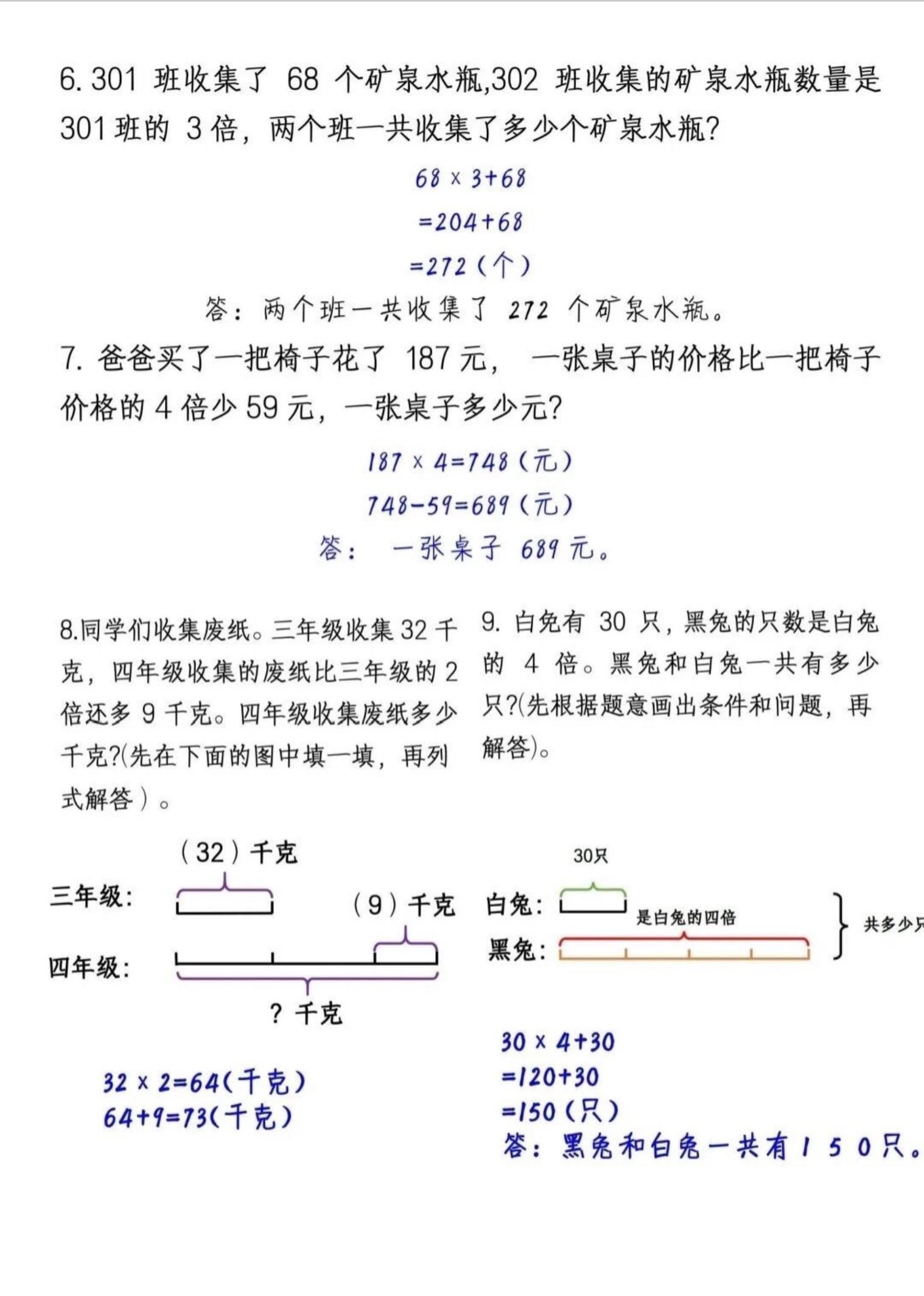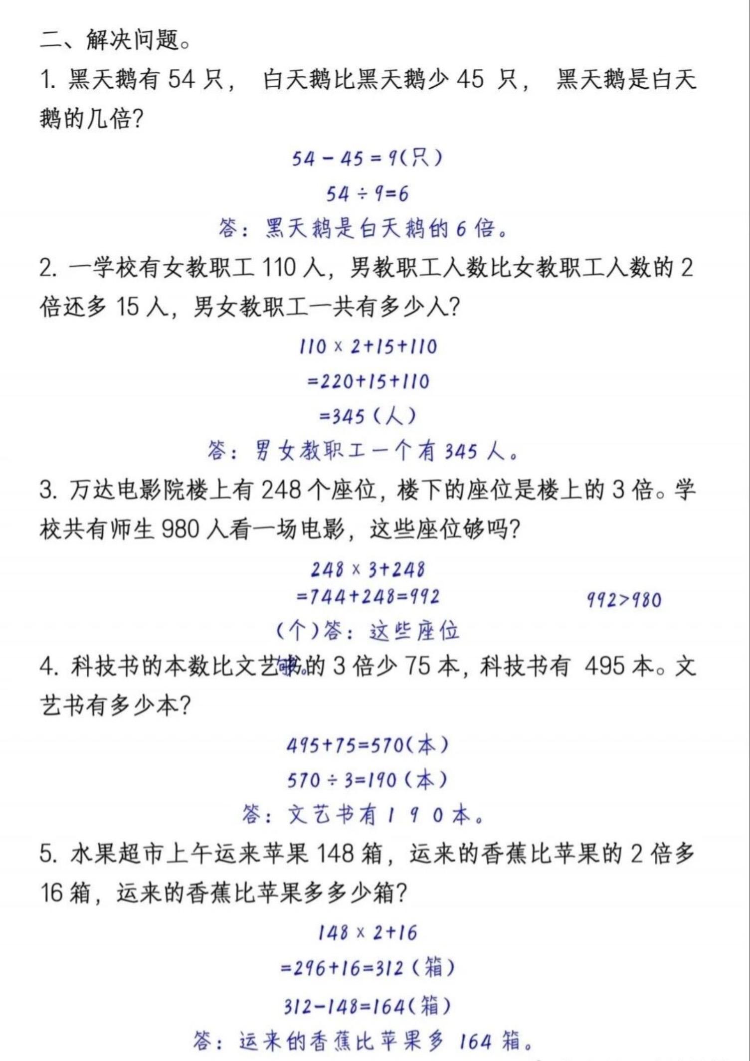 三年级上册数学【倍的认识】例题和练习。 有需要可以自行下载打印出来...
