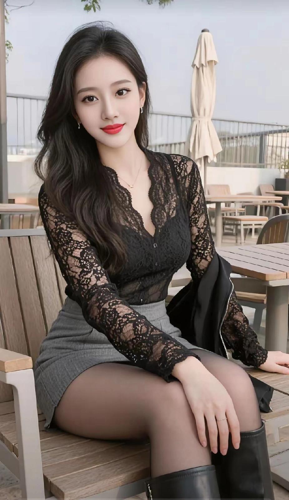 优雅黑纱连衣裙,甜美笑容,气质迷人