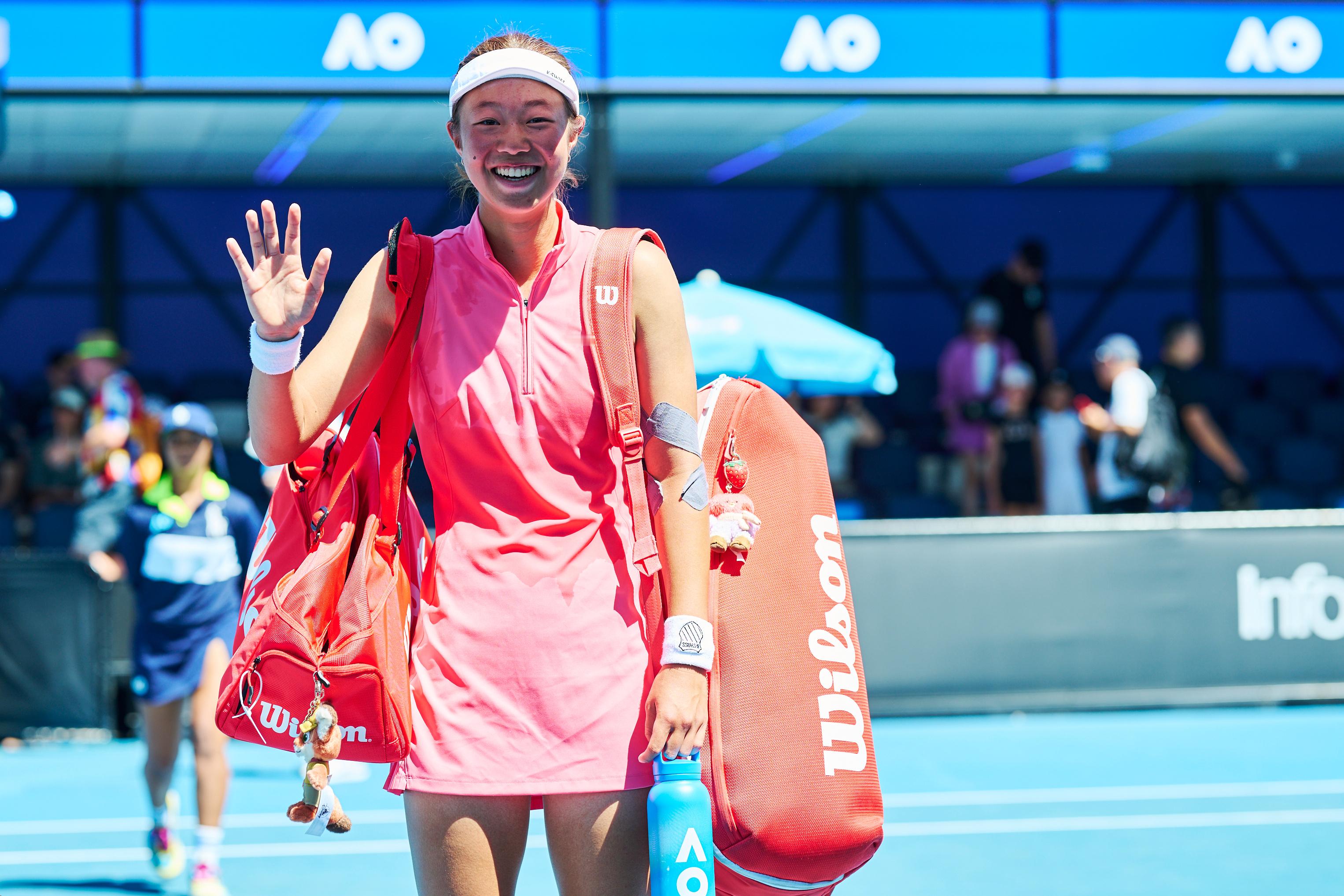 中国小花渠依含澳网2026 打开中国青少年军团的胜利之门,甜美笑容绽放!美!摄影:墨尔本前方记者 李建艺这很澳网