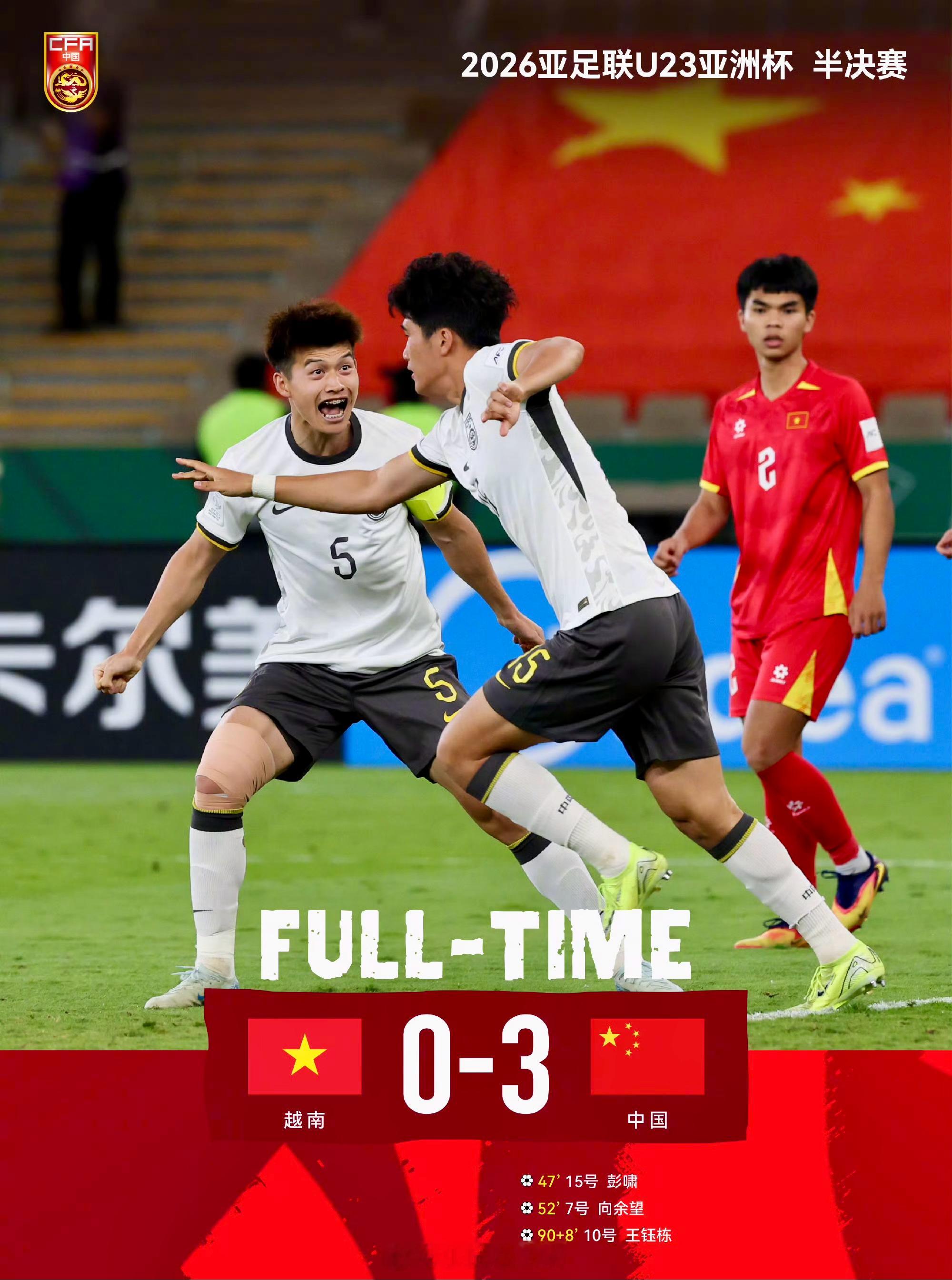 在结束的2026年U23亚洲杯半决赛中,中国U23男足以3比0完胜越南队,首次挺进该项赛事决赛!北京时间1月24日23:00,中国队将迎战日本队,争夺本届U23亚洲杯冠军。 这是中国男足国字号球队时隔22年再度站上亚洲洲际赛事的决赛舞台,意义非凡。中国队,加油!我们与你并肩,共赴这场青春与荣耀的巅峰之战。中国球迷在沙特偶遇U23国足