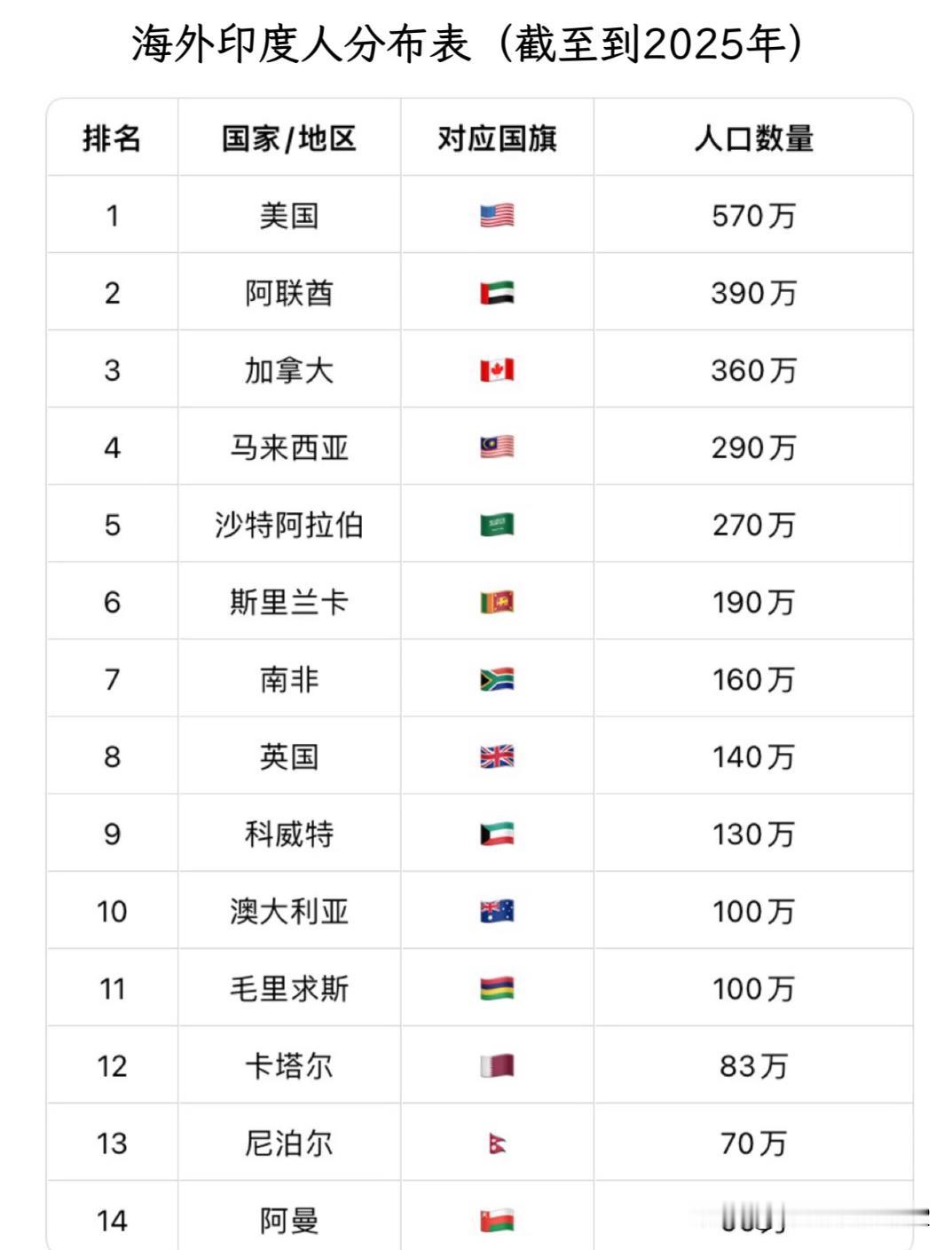 无处不在的印度人,要涌入中国了吗 最新消息,中国考虑对加拿大免签了, 听到这样的消息,大家的担心却是: 会有一大堆印度人涌入中国吗, 哈哈,果然是 “印拿大”。 加拿大是印度海外侨民的第三大聚居地, 有360万印度裔在此生活。 他们的存在感,实在是过于强大了。 事实上,印度人的足迹,遍布世界每一个角落, 从繁华都市到偏远小镇,都有他们的身影。 印度香料的芬芳、宝莱坞的热情和瑜伽的魅力, 别具一格呢。 不得不感叹,印度人真的是无处不在。 无论是在纽约的街头,还是在迪拜的商场, 总能看到他们充满活力的面容。 满满正能量,E人属性, 仿佛整个世界都是他们的舞台, 那个配得感太强了。 3400多万印度侨民, 散落在全球各地各大洲。 感觉除了南美,印度人真的是everywhere。 其实很多国际都市, 都拥有非常多元化的人口构成。 但为什么印度人总能在人群中脱颖而出呢, 总是那个显眼包呢。